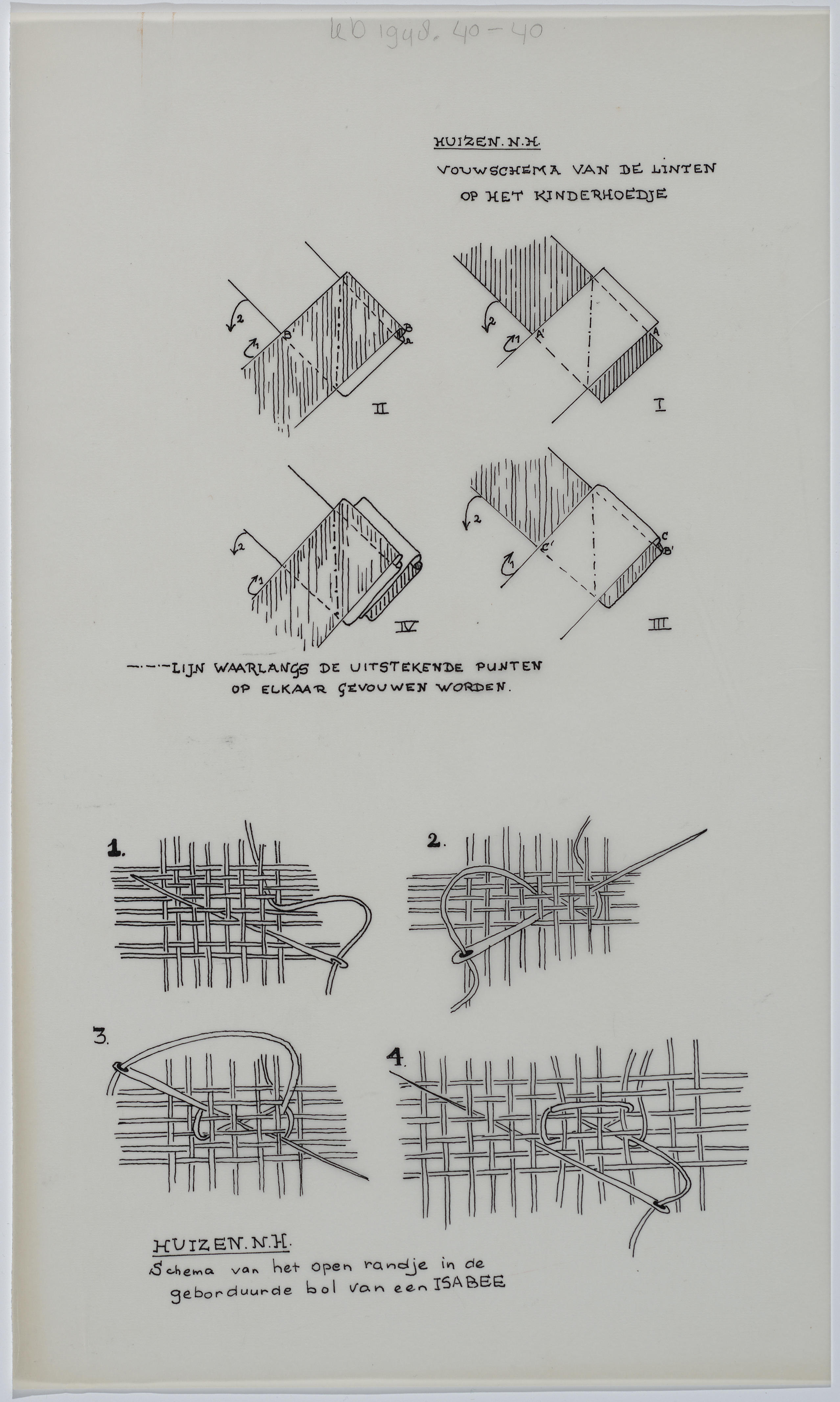 Vouwwijze linten op kinderhoedje, Huizen (patroontek...