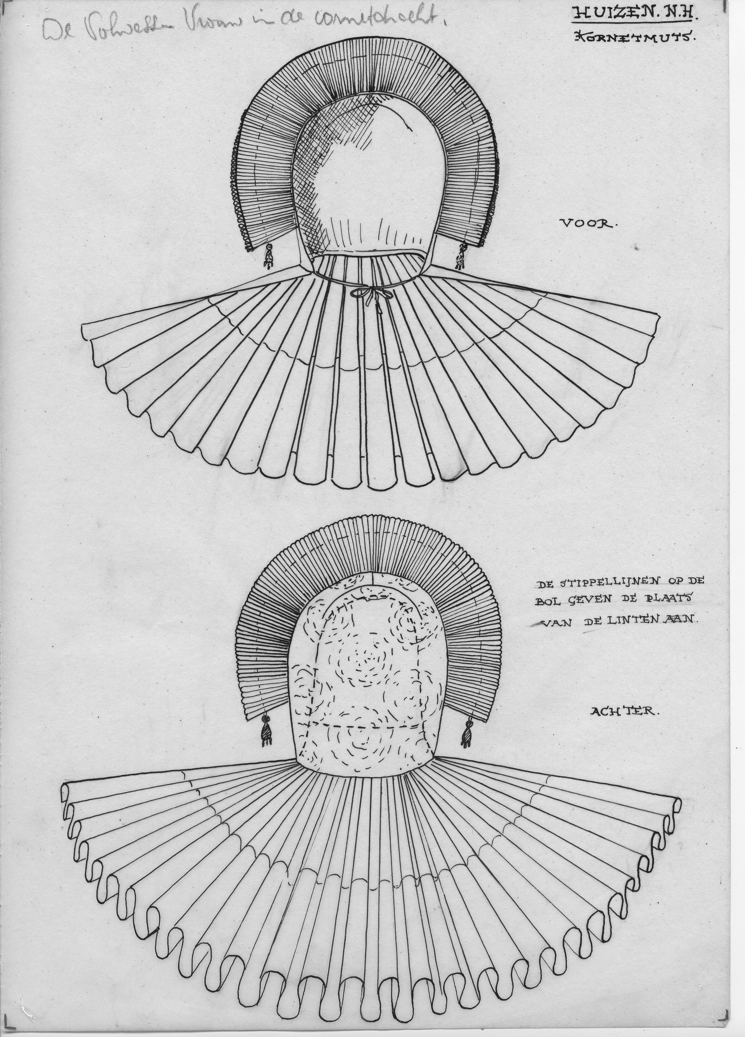 Tekening van een kornetmuts, Huizen (opmetingstekening)