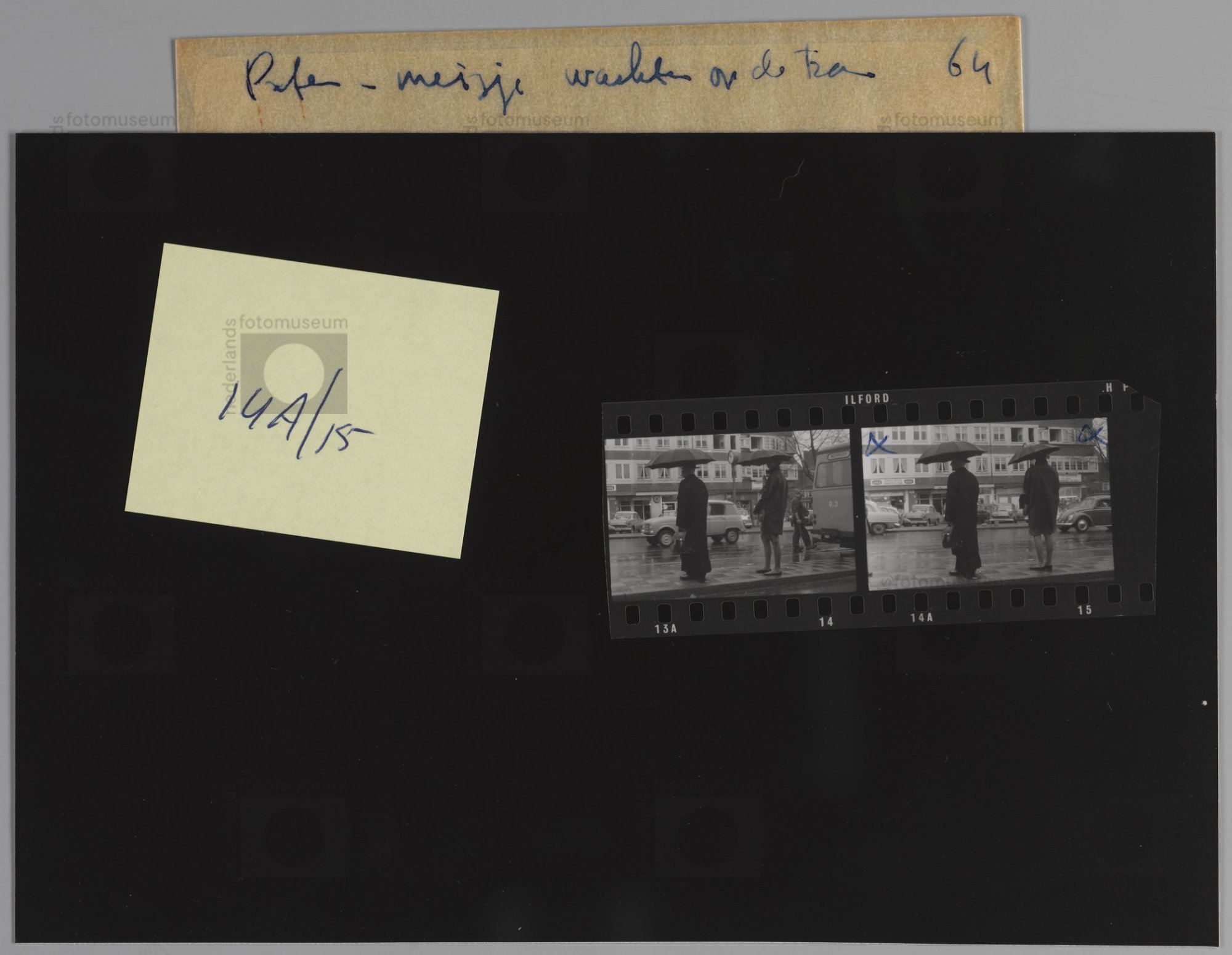 Amsterdam, Hoofdweg. Pater en vrouw wachten op de tr...