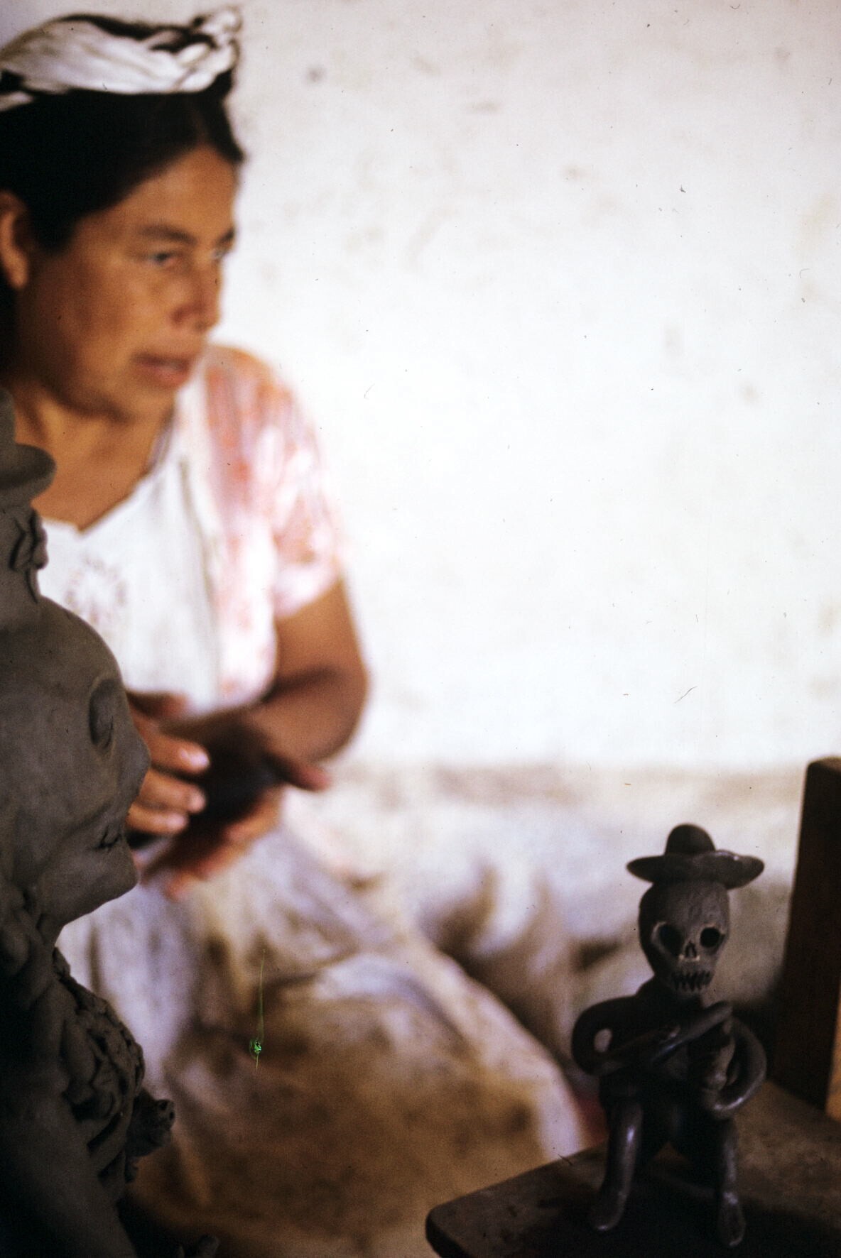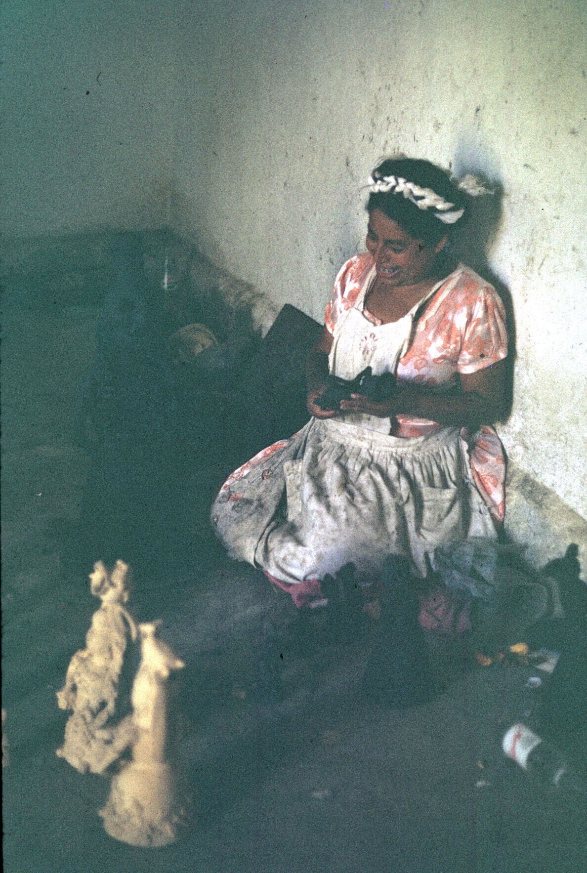 meisje met door Avelino Nuñez gemaakte aardewerk fig...