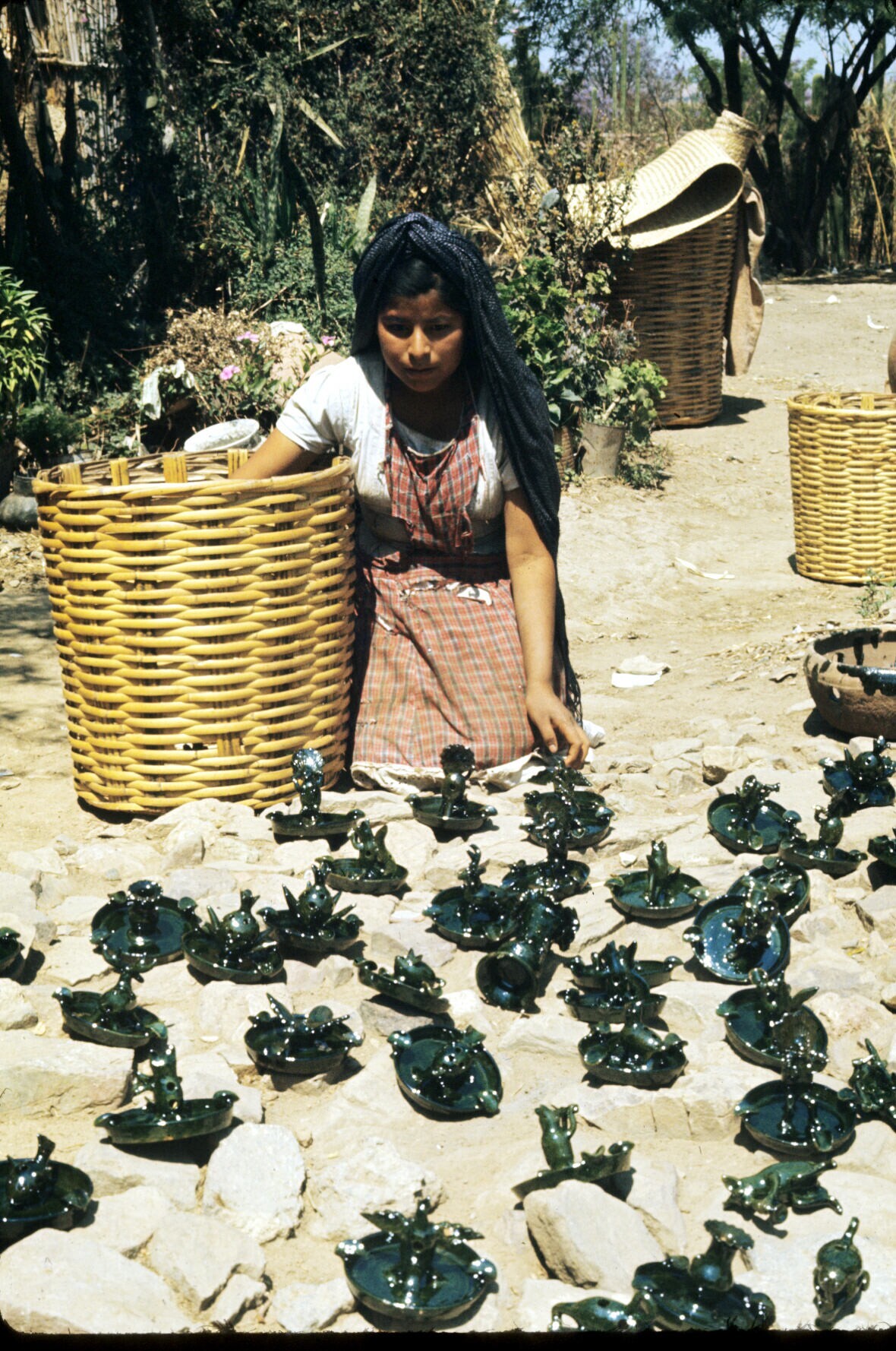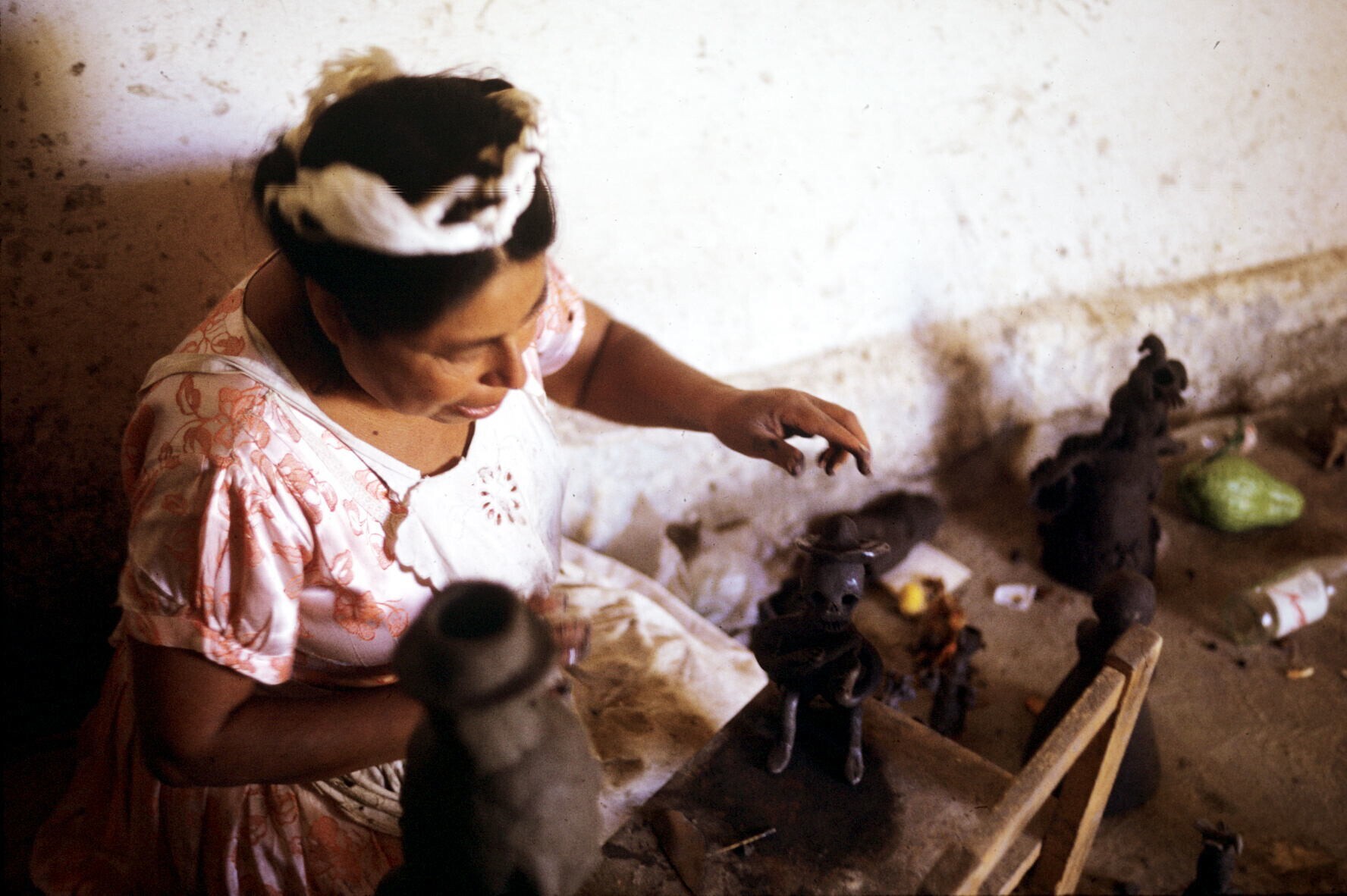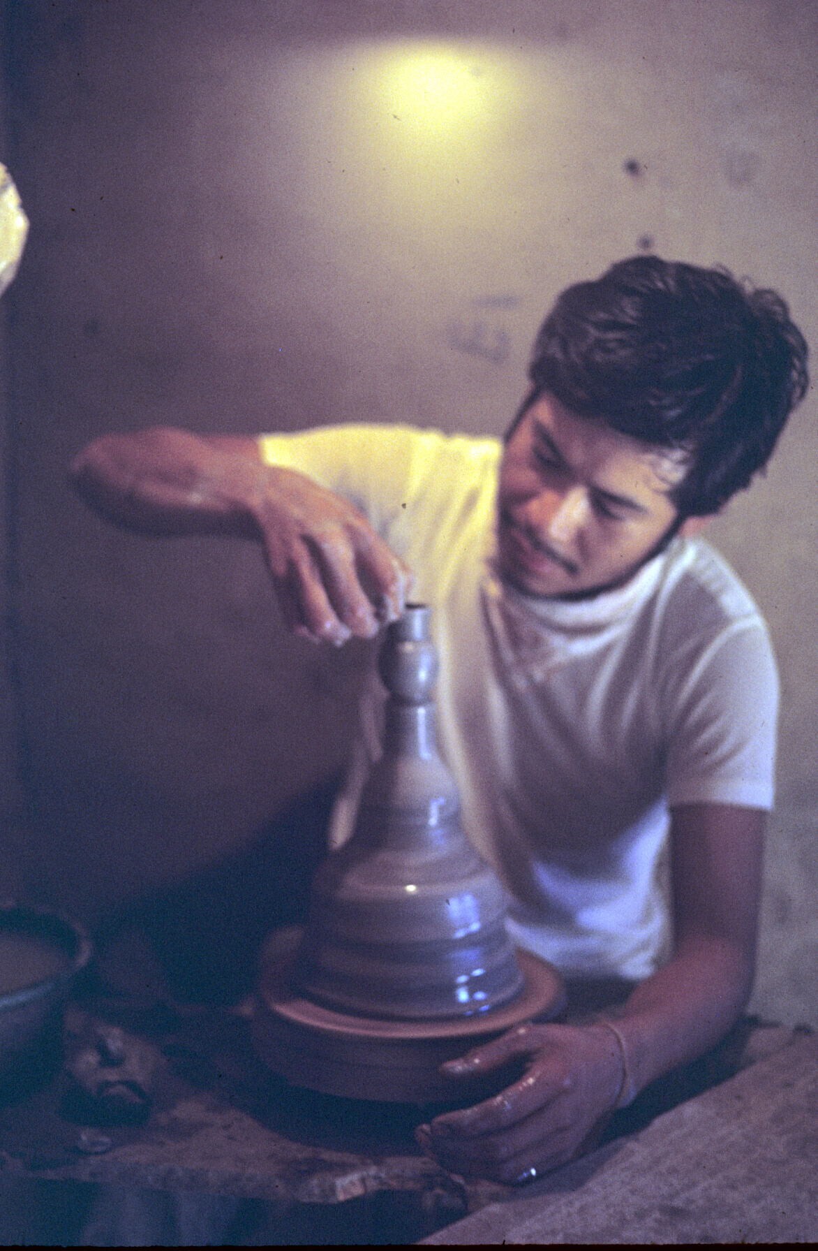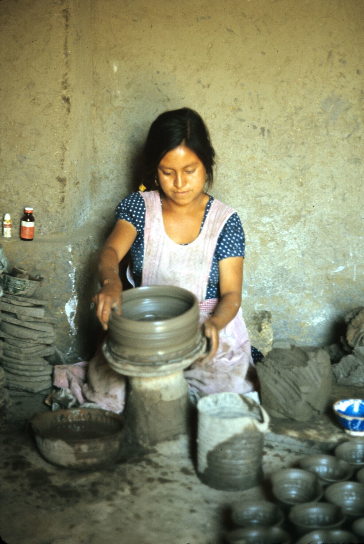 meisje in atelier van pottenbakker Avelino Nuñez, po...