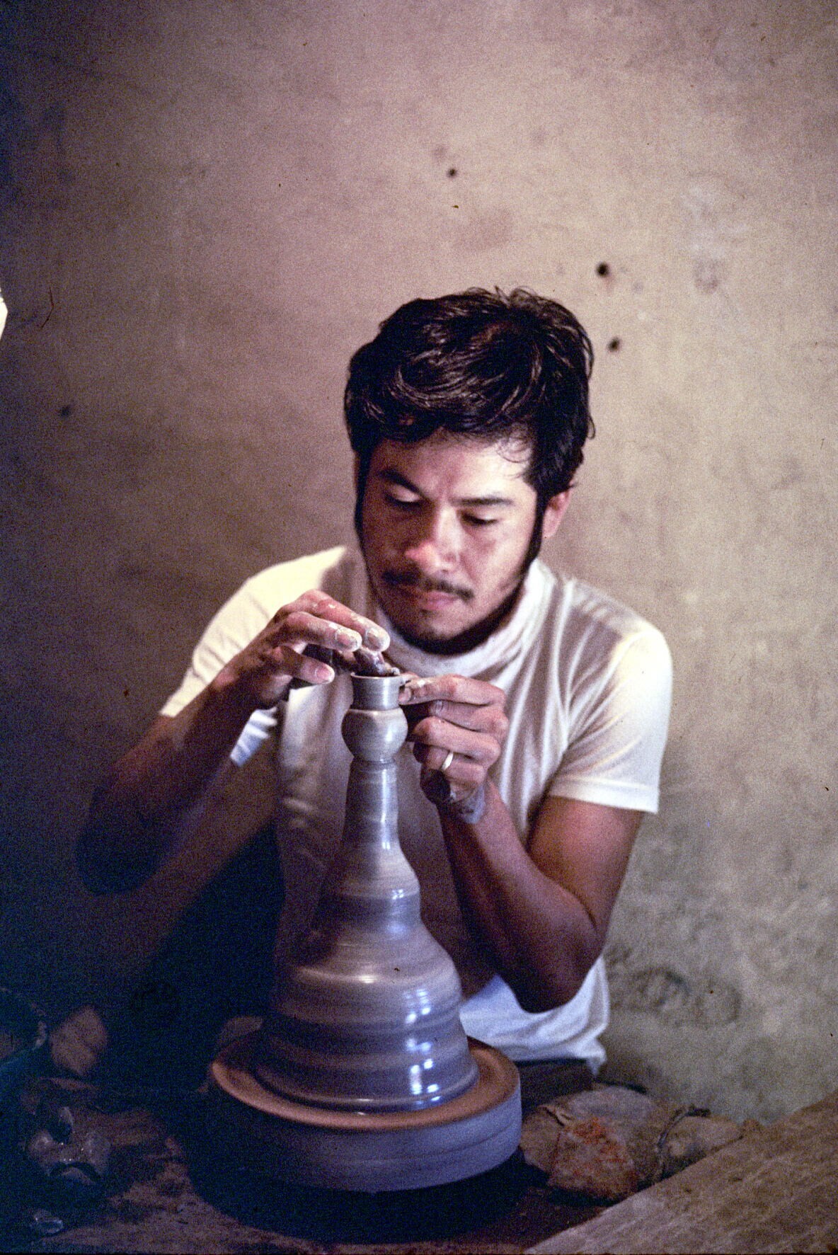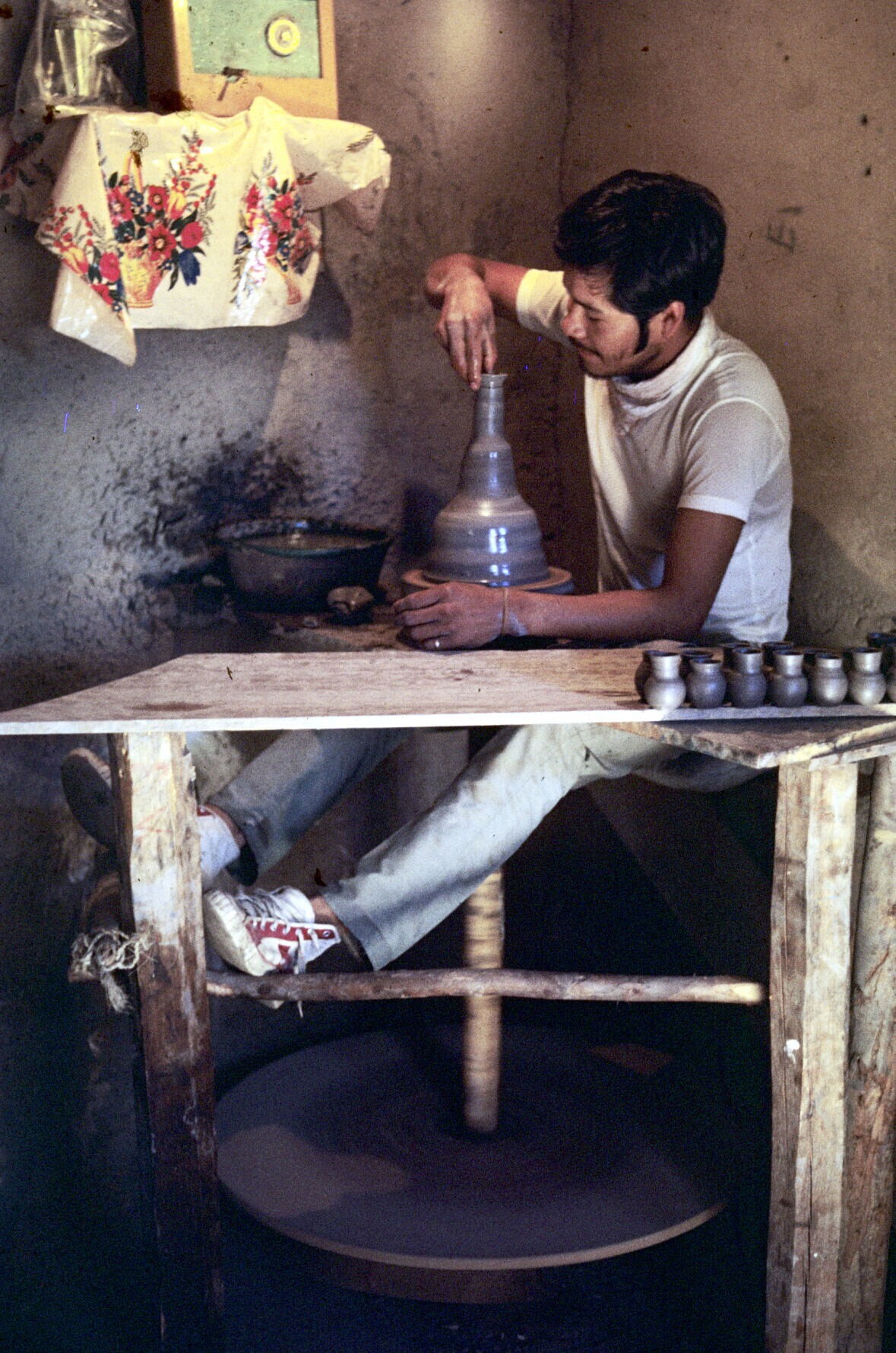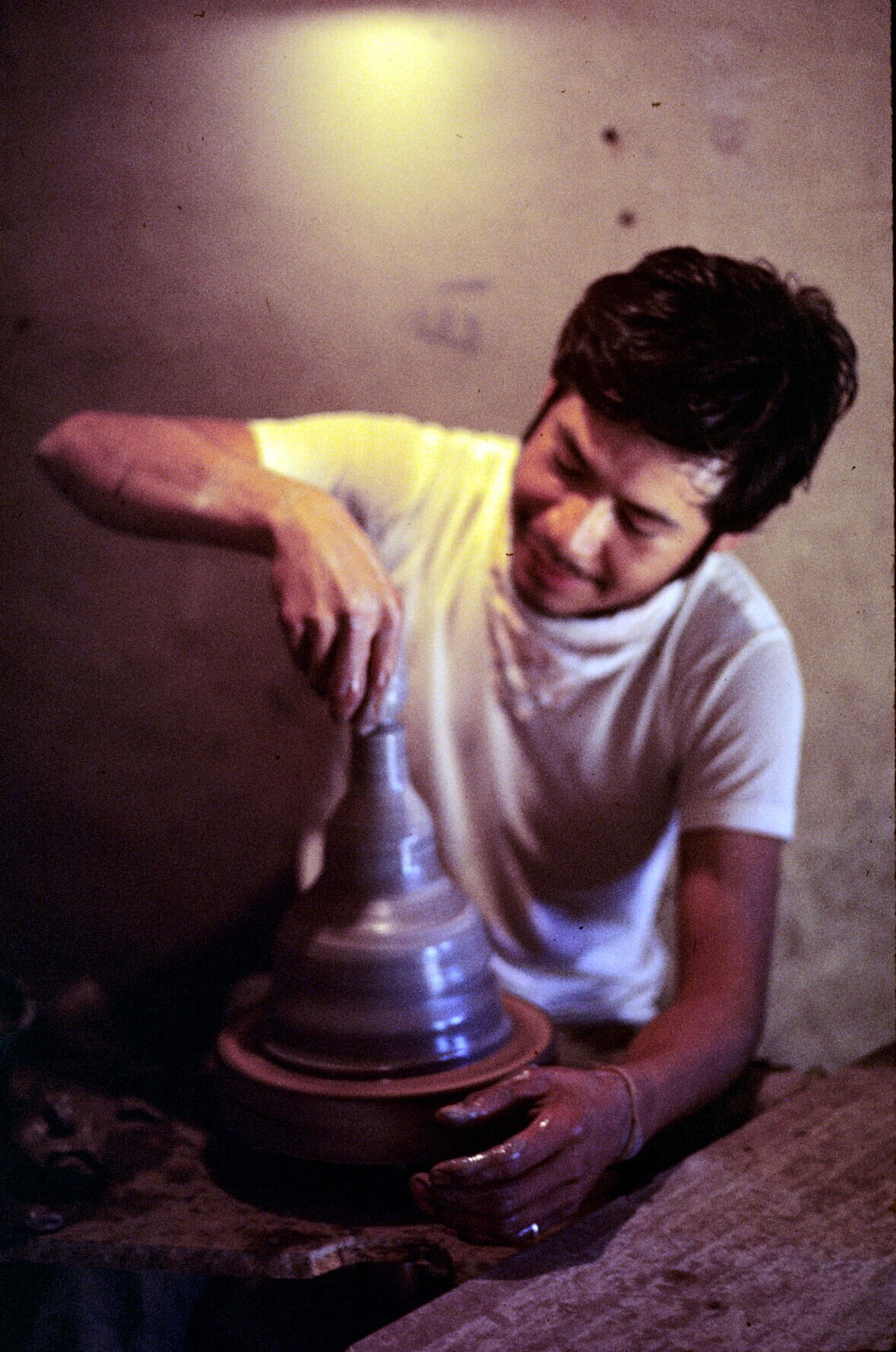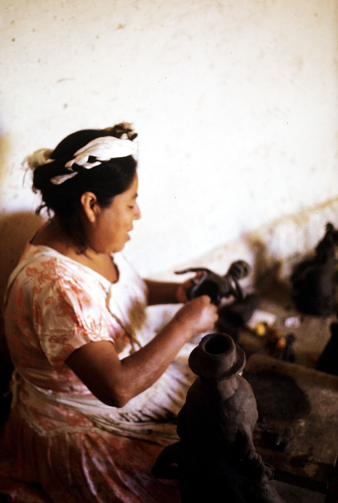 meisje in atelier van pottenbakker Avelino Nuñez, po...