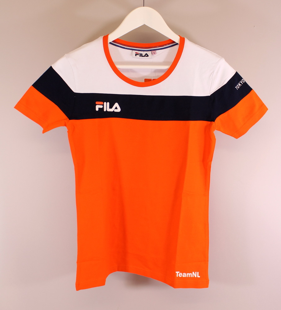 Twee Oranje, blauw, wit T-shirts korte en lange mouw...