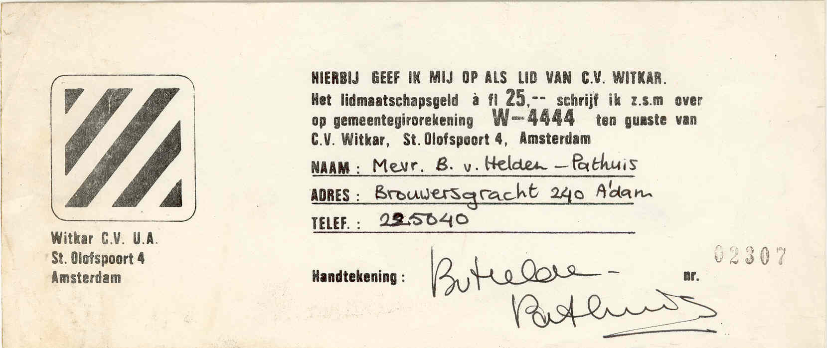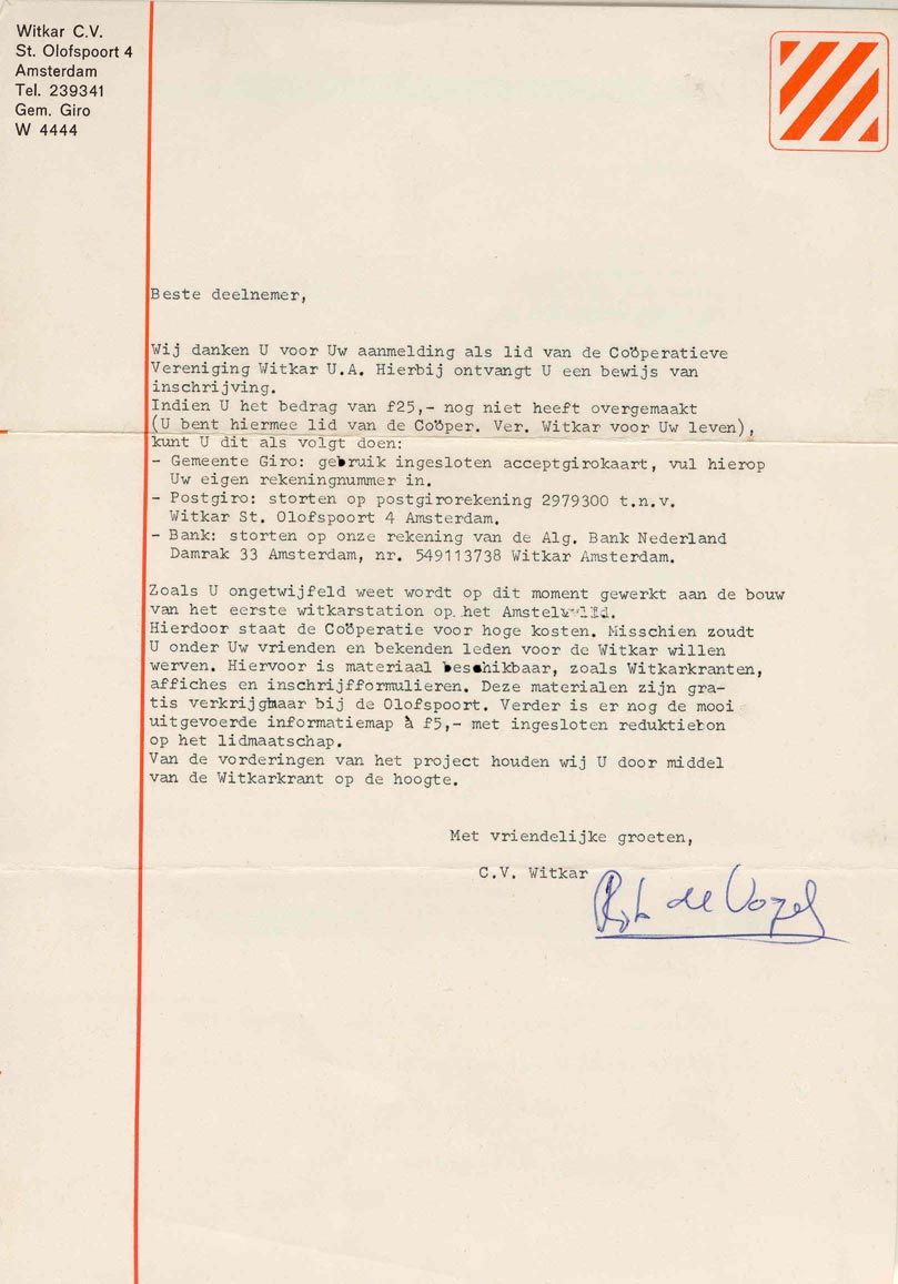 Documentatie over Witkar (bon voor opgave lidmaatschap)