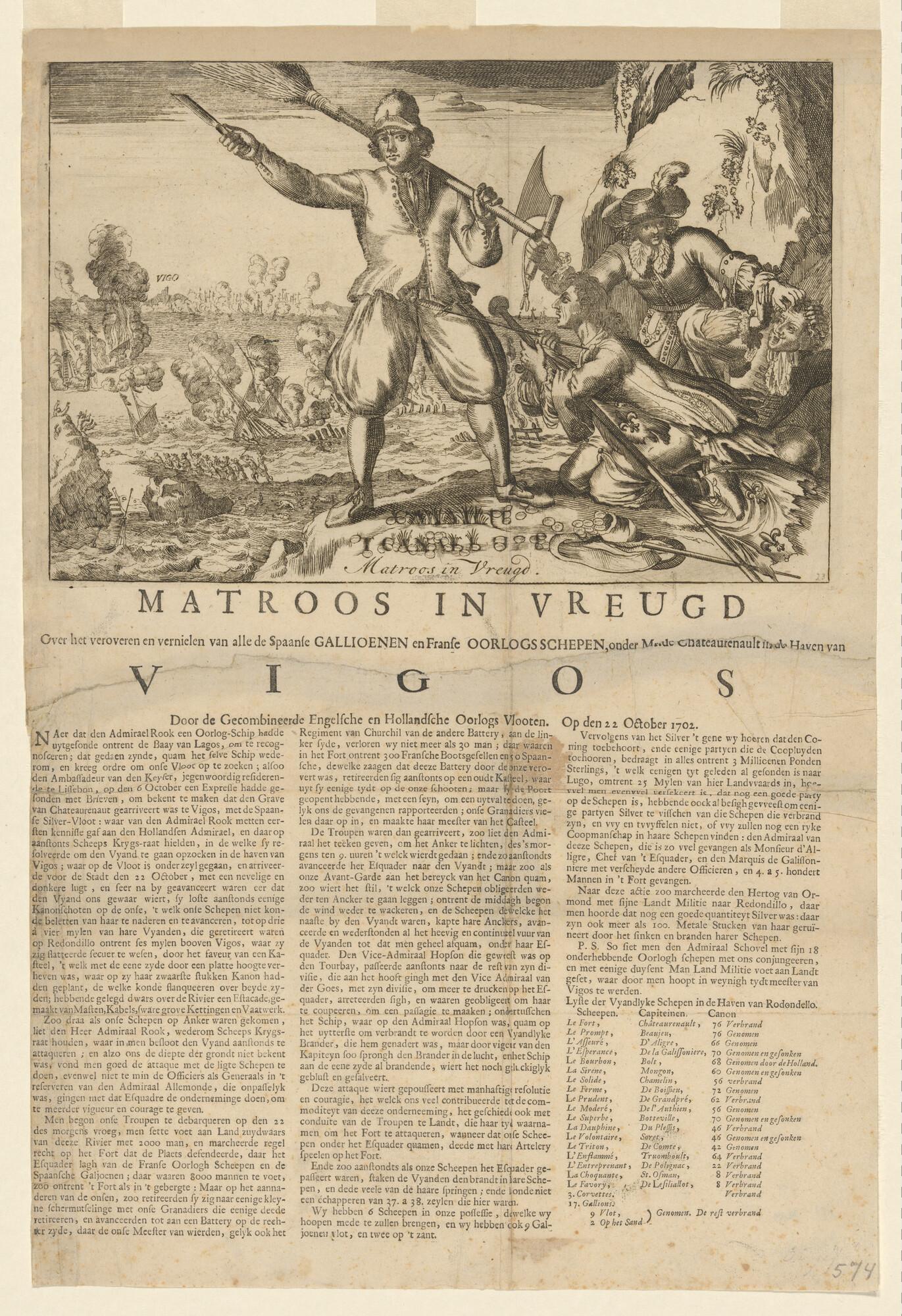 Zinneprent op het nemen van de Spaanse zilvervloot i...
