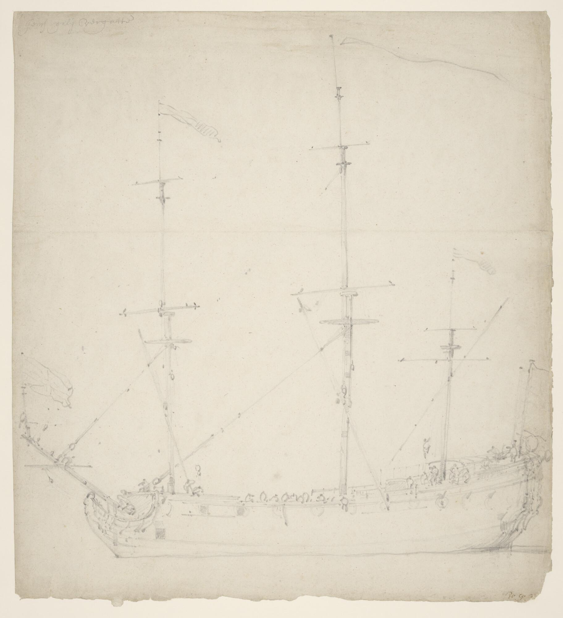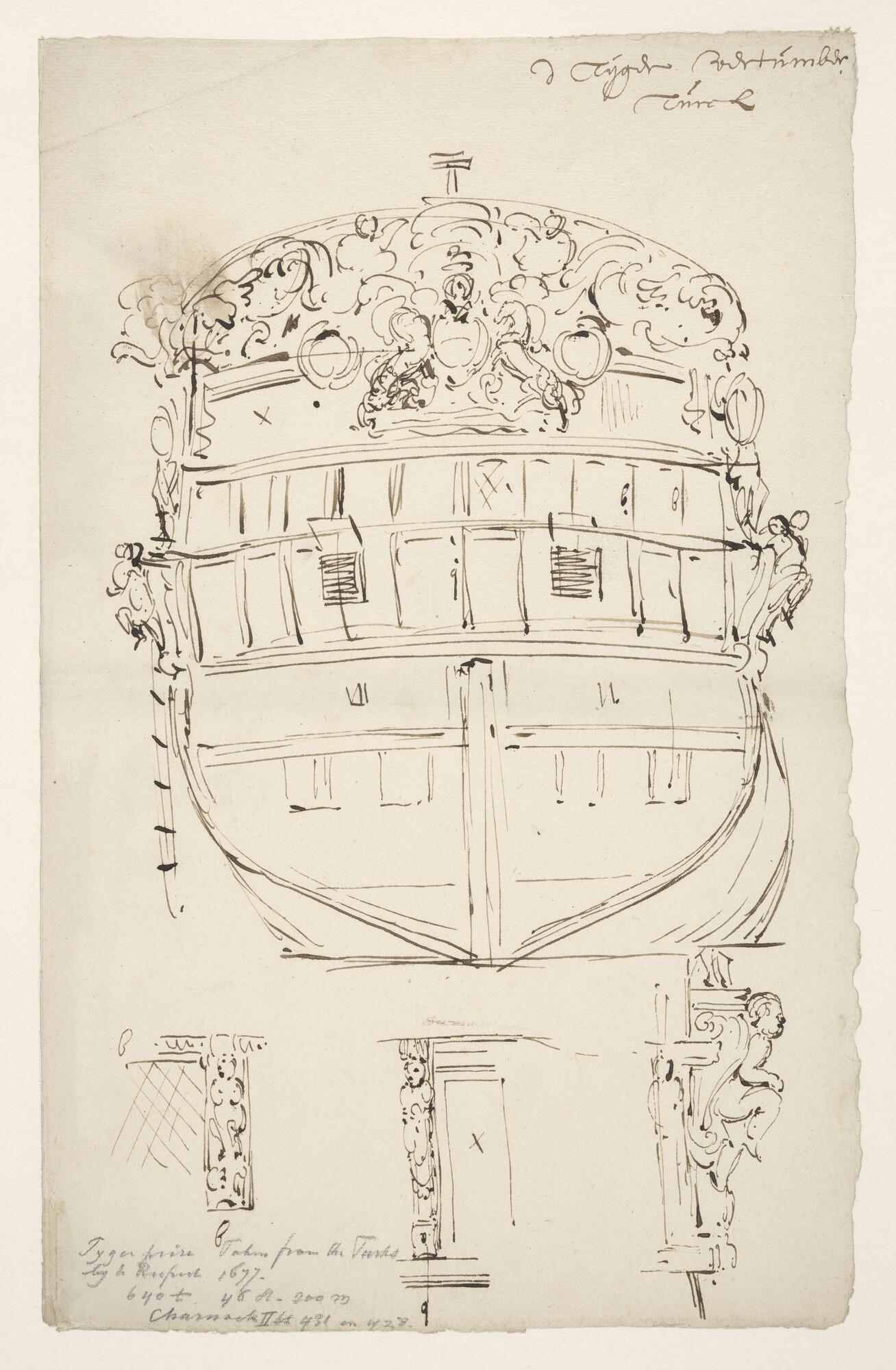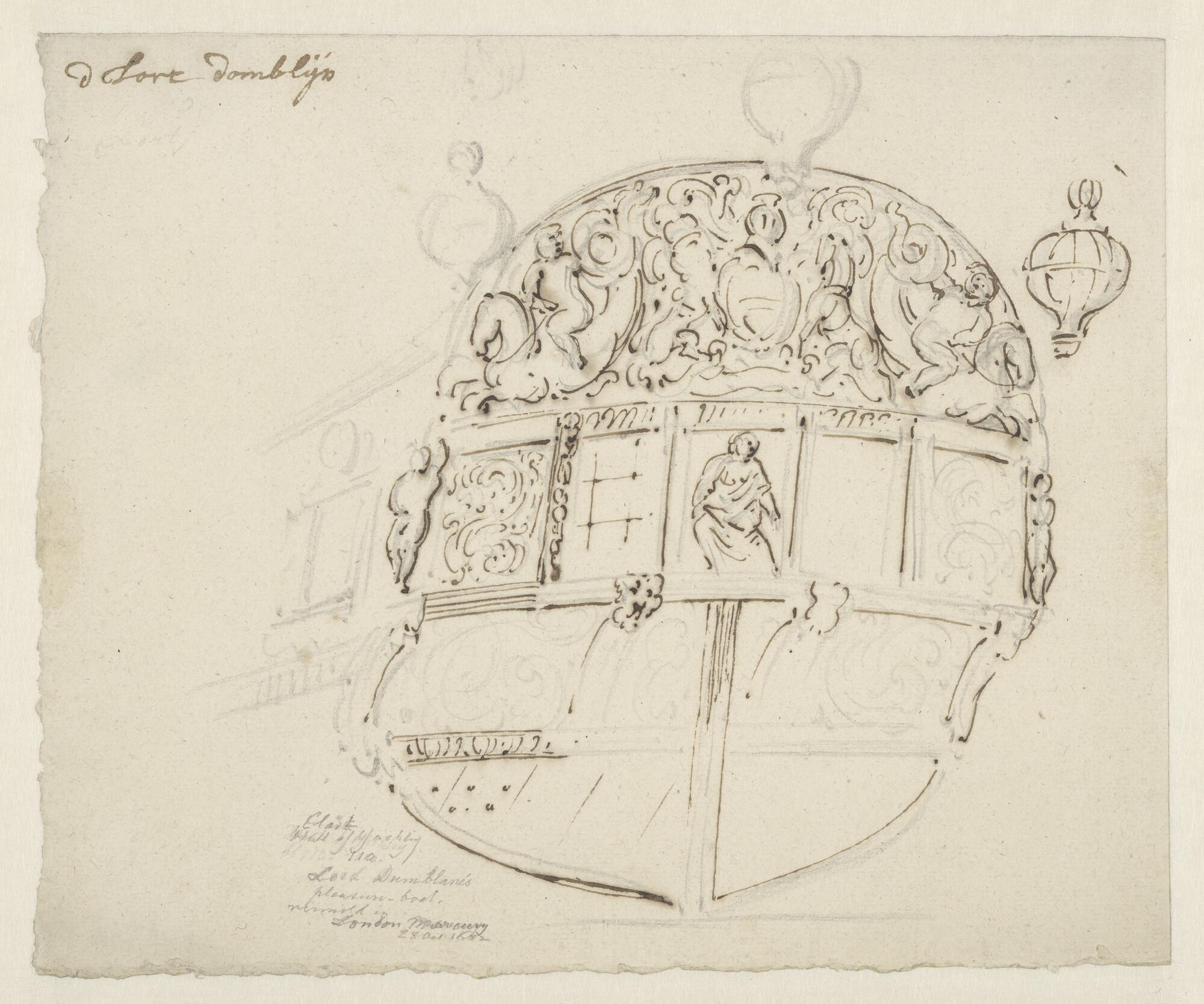 Spiegelontwerp voor het jacht van Willem van de Velde