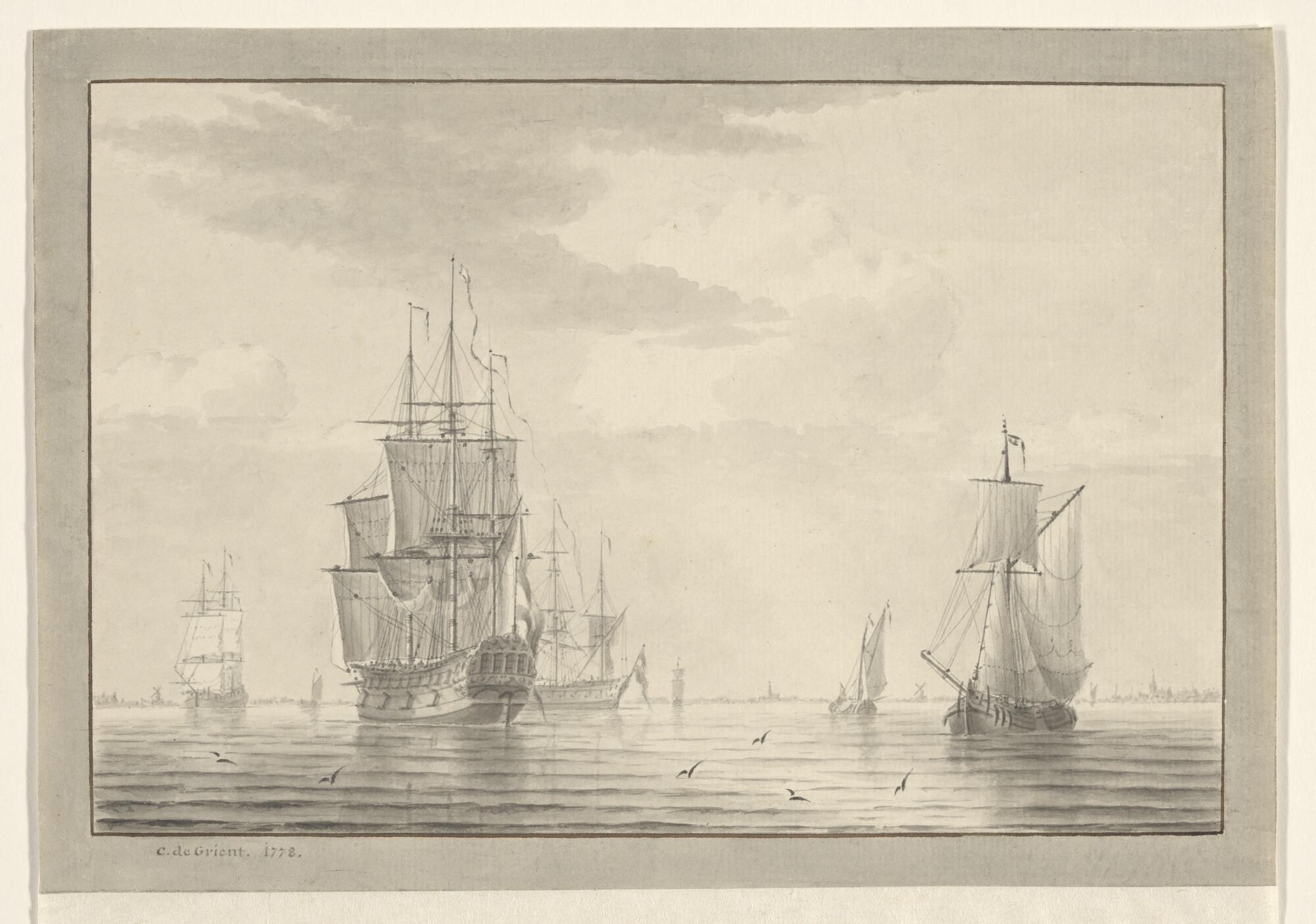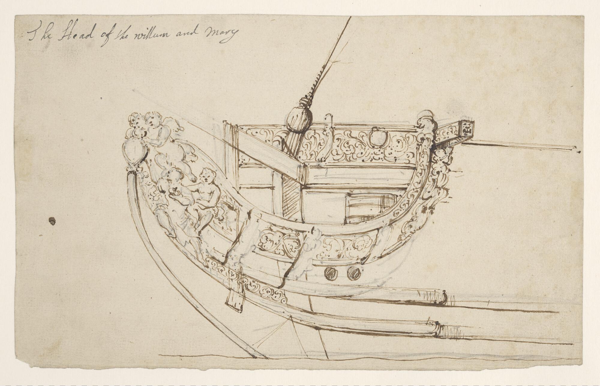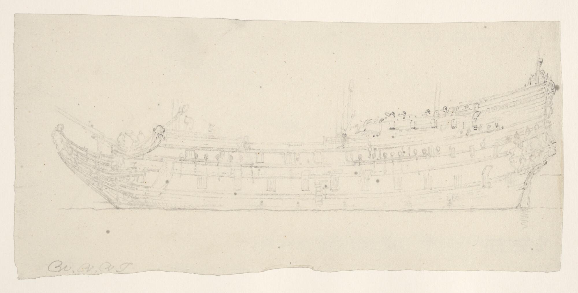 Spiegelontwerp voor het jacht van Willem van de Velde
