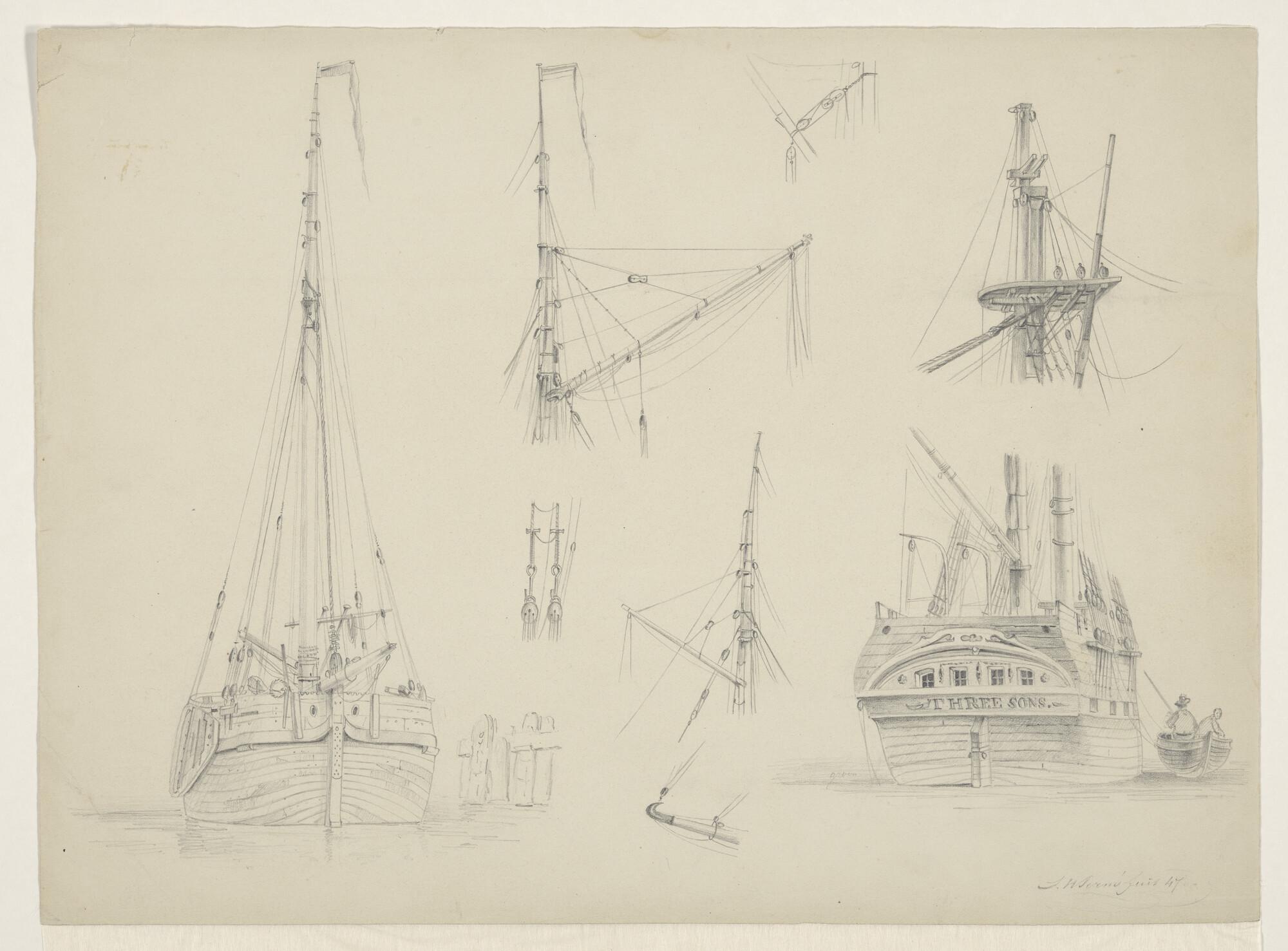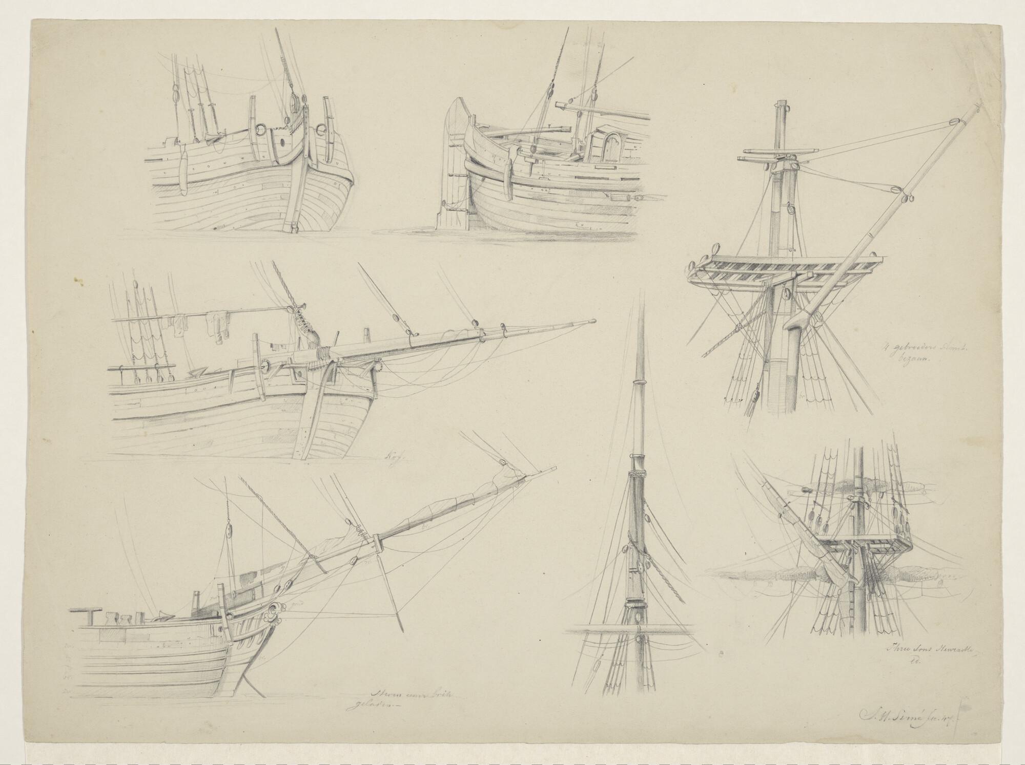 Voor- en achteraanzichten van diverse zee- en binnen...