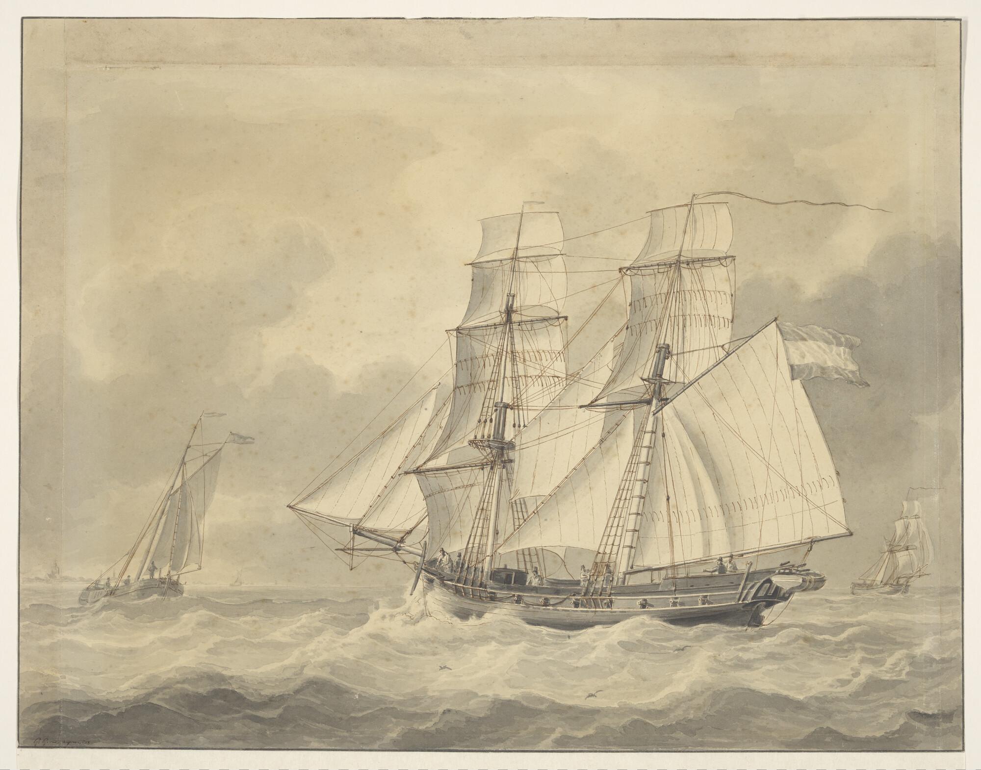 Een binnenschip; het Engelse schip 'Three Sons'; tui...