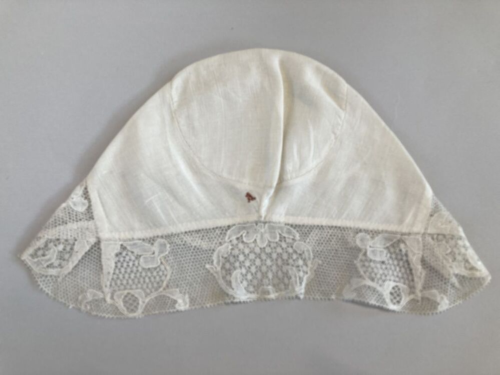 Witte ondermuts van linnen met kloskanten rand, met ...