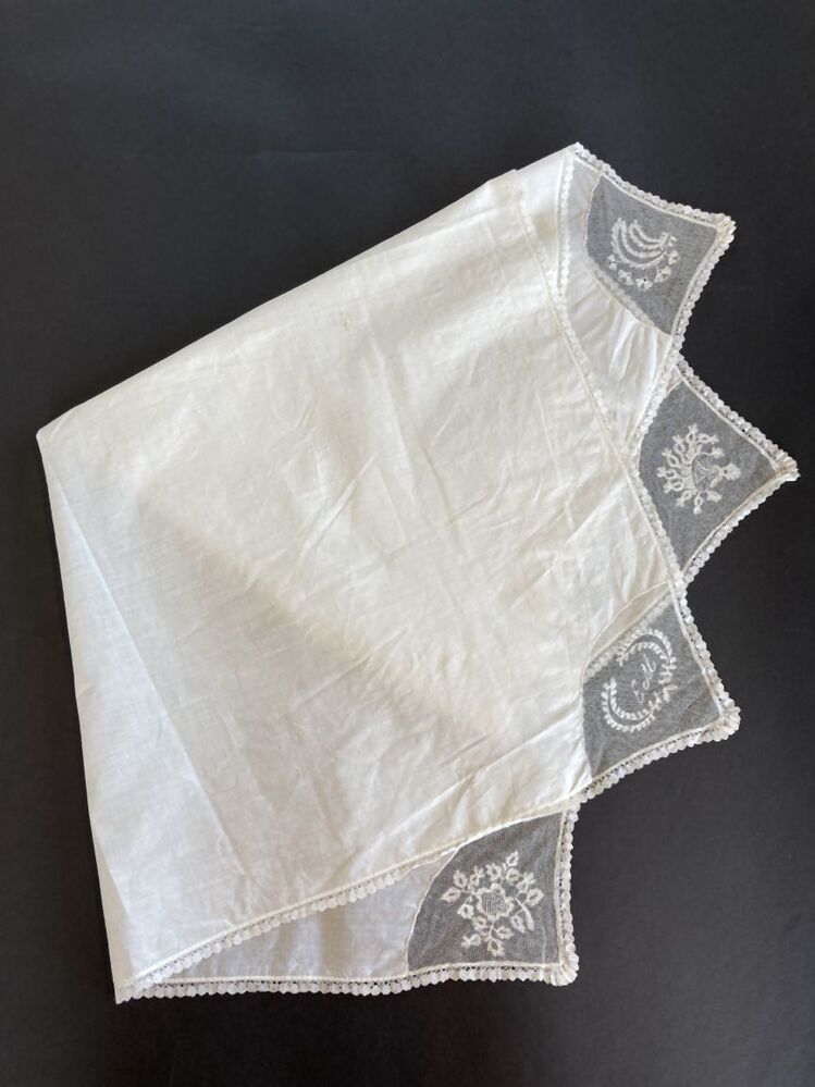 Zakdoek van batist met waaiervormige inzetten van tu...