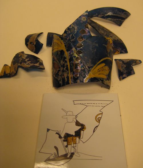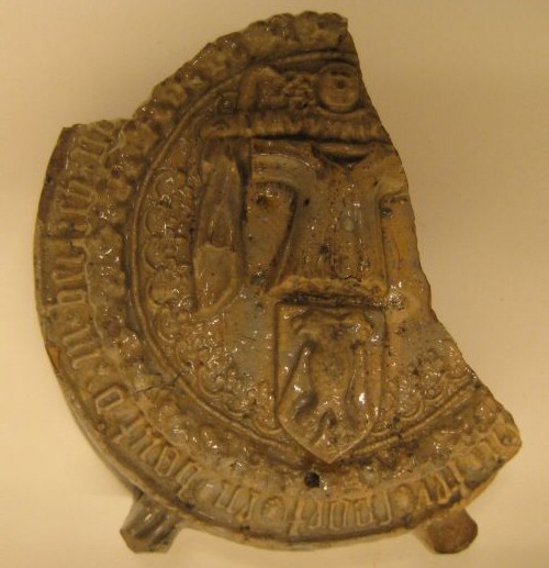 Pelgrimsfles, fragment, van steengoed met een afbeed...