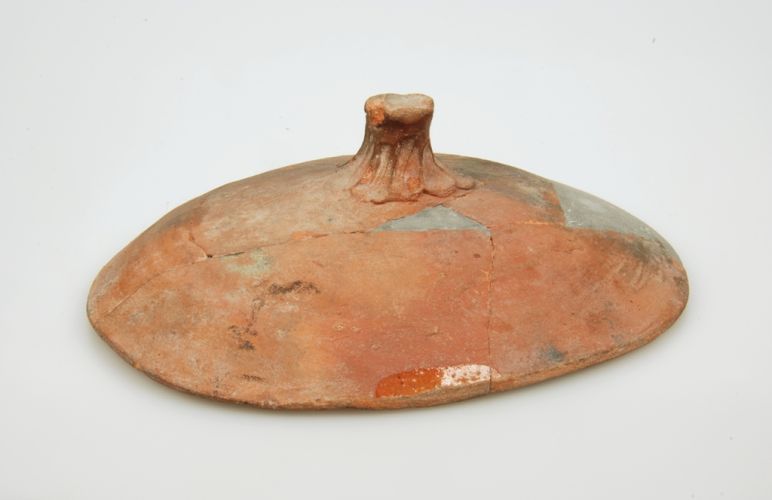 Ovale deksel van roodbakkend aardewerk, 16de eeuw