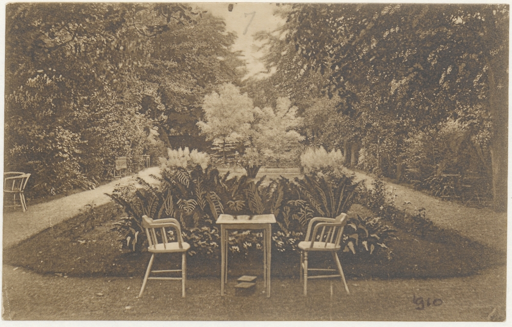 Tuin achter hotel De Veluwe.
