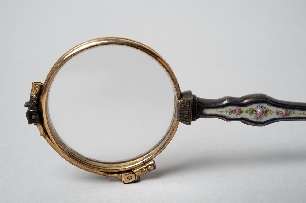 Gedecoreerde schaarbril of binocle