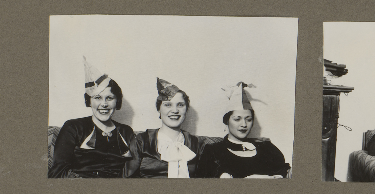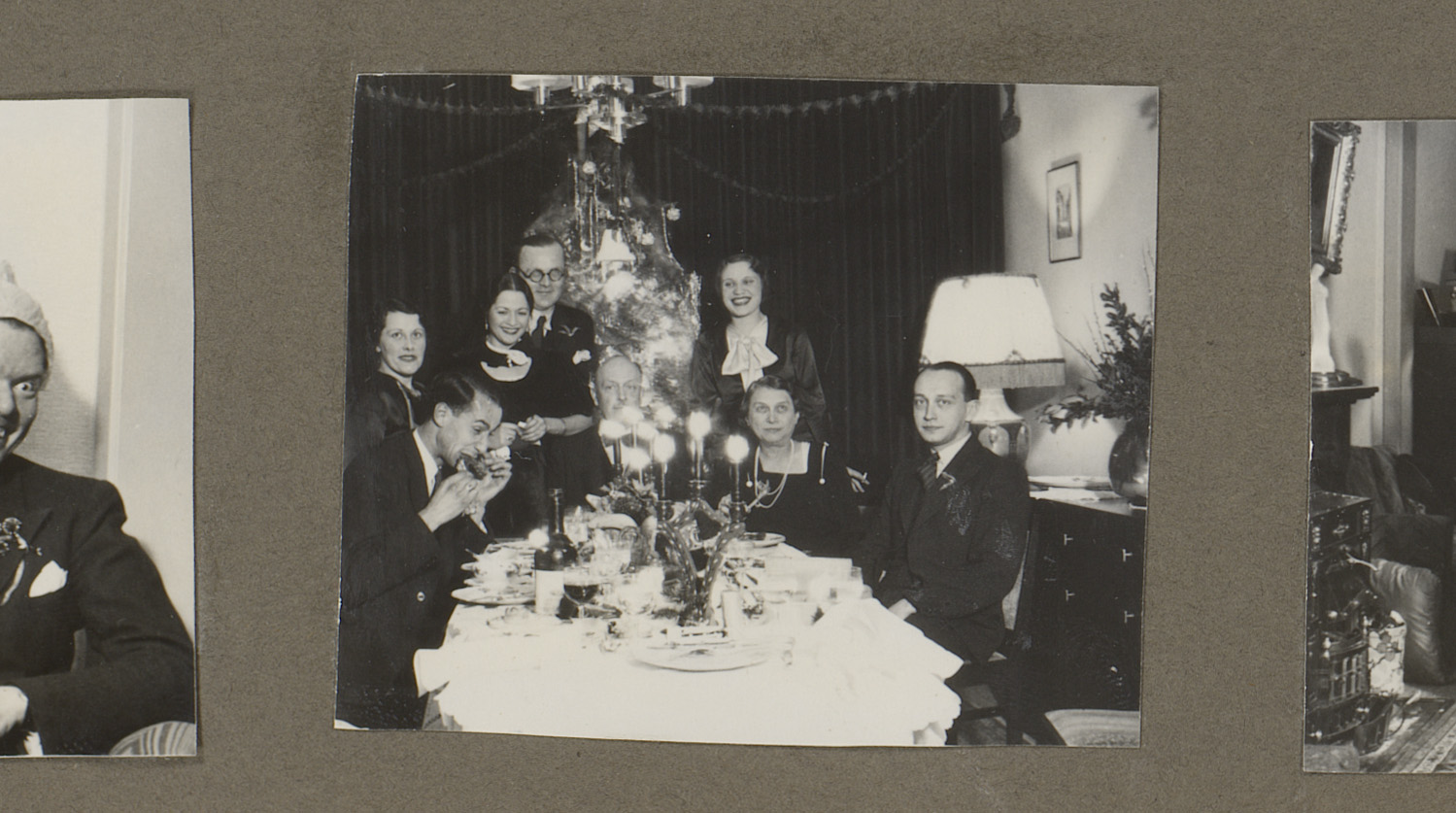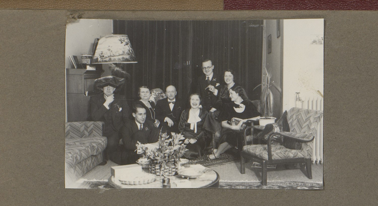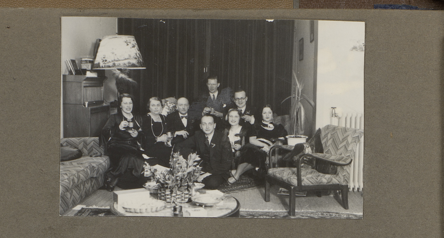 Groepsportret van een gezelschap bij een feest in ee...