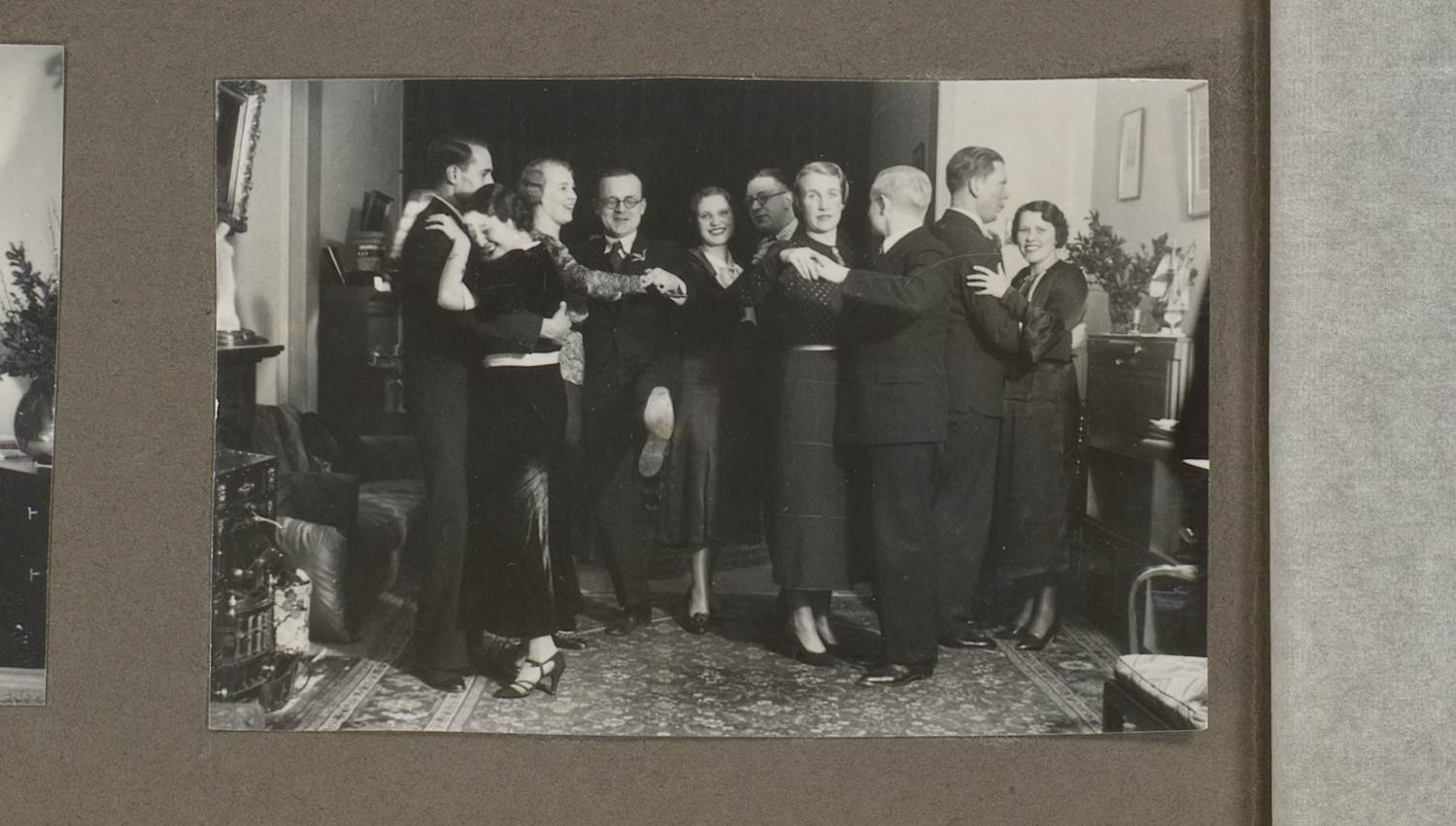 Gezelschap dansend in een huiskamer