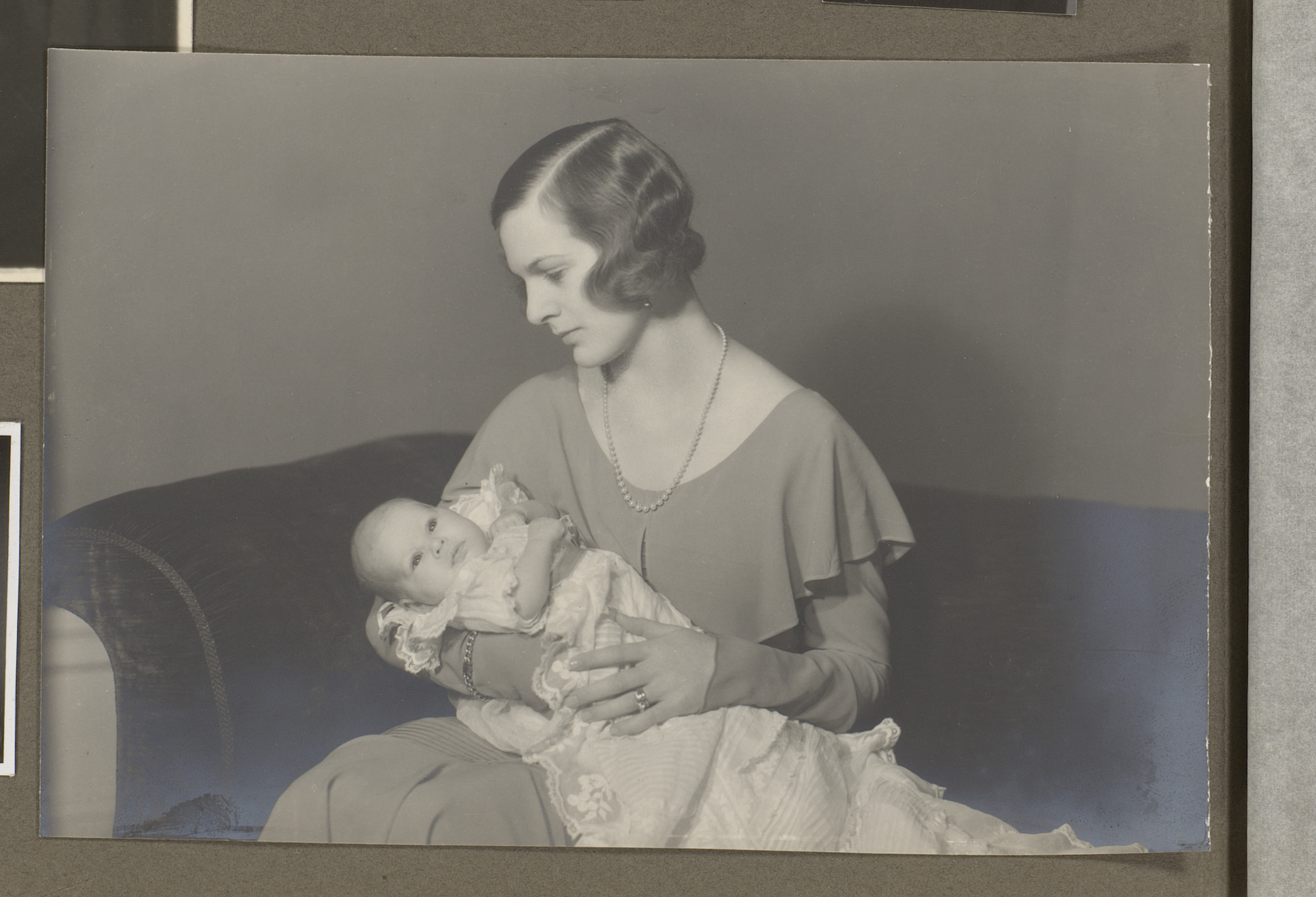 Portret van Corry Mak van Waay-Zulver met een baby