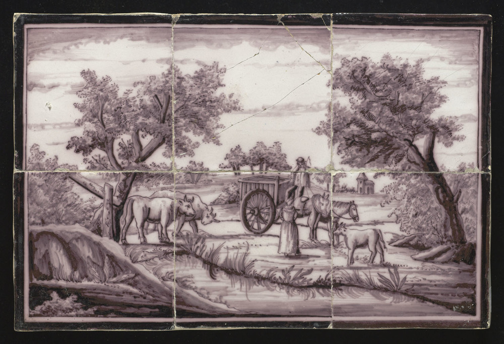 Tegeltableau van keramiek, tinglazuur, voorstellende...