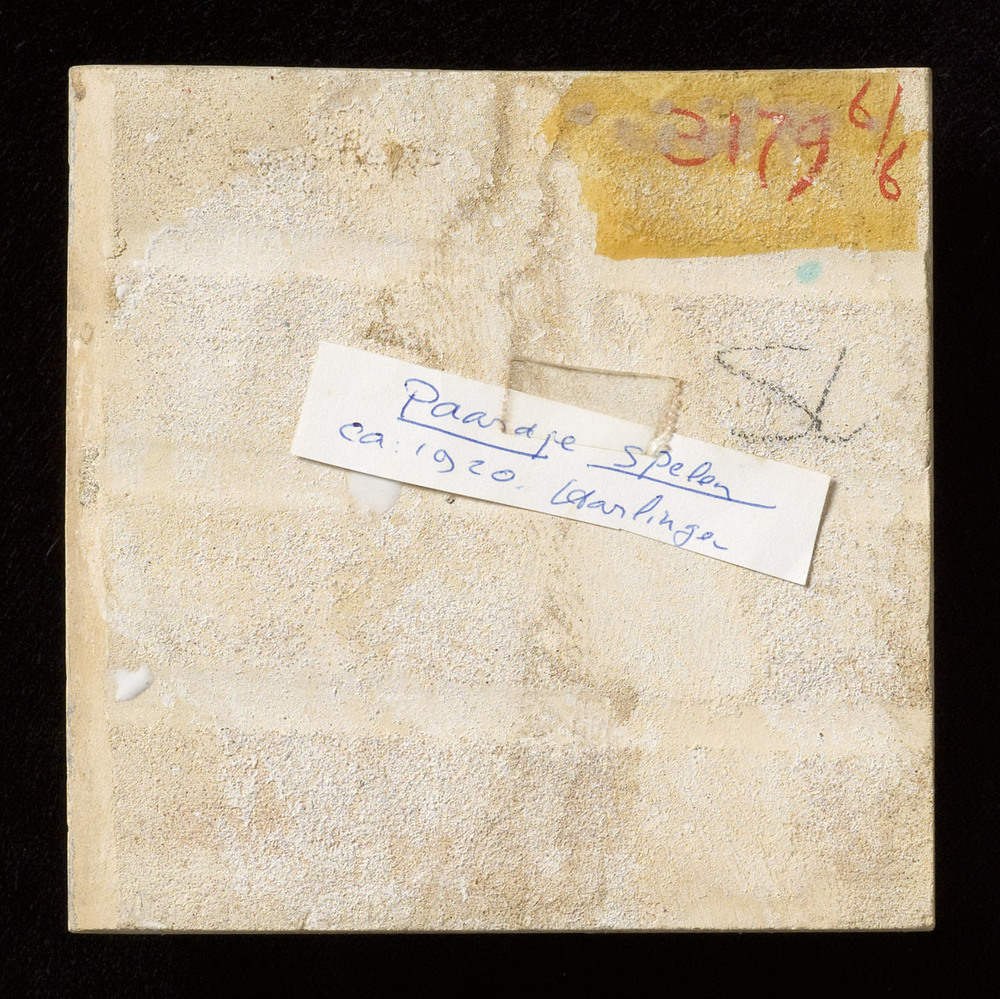 Tegel in tinglazuur, met vorostelling: Gestileerde b...