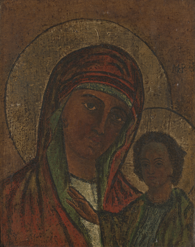 Paneelschildering "Madonna met kind" op hout, ingeli...