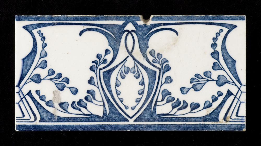 Randtegel in transfertechniek, met voorstelling, orn...
