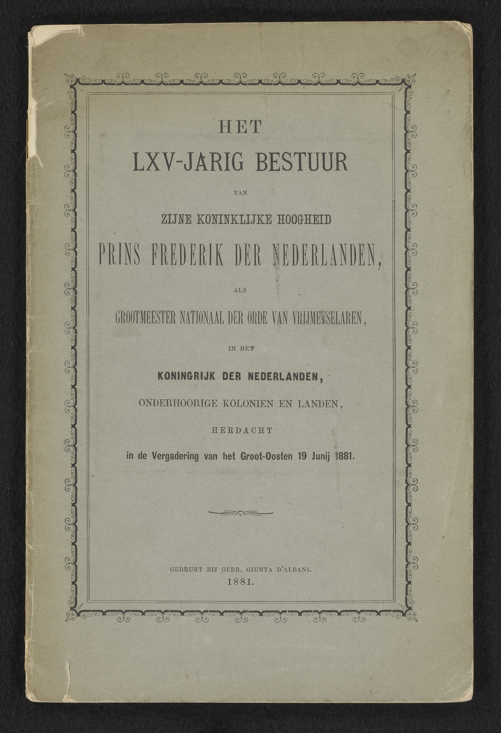 Het LXV-jarig bestuur van Zijne Koninklijke Hoogheid...
