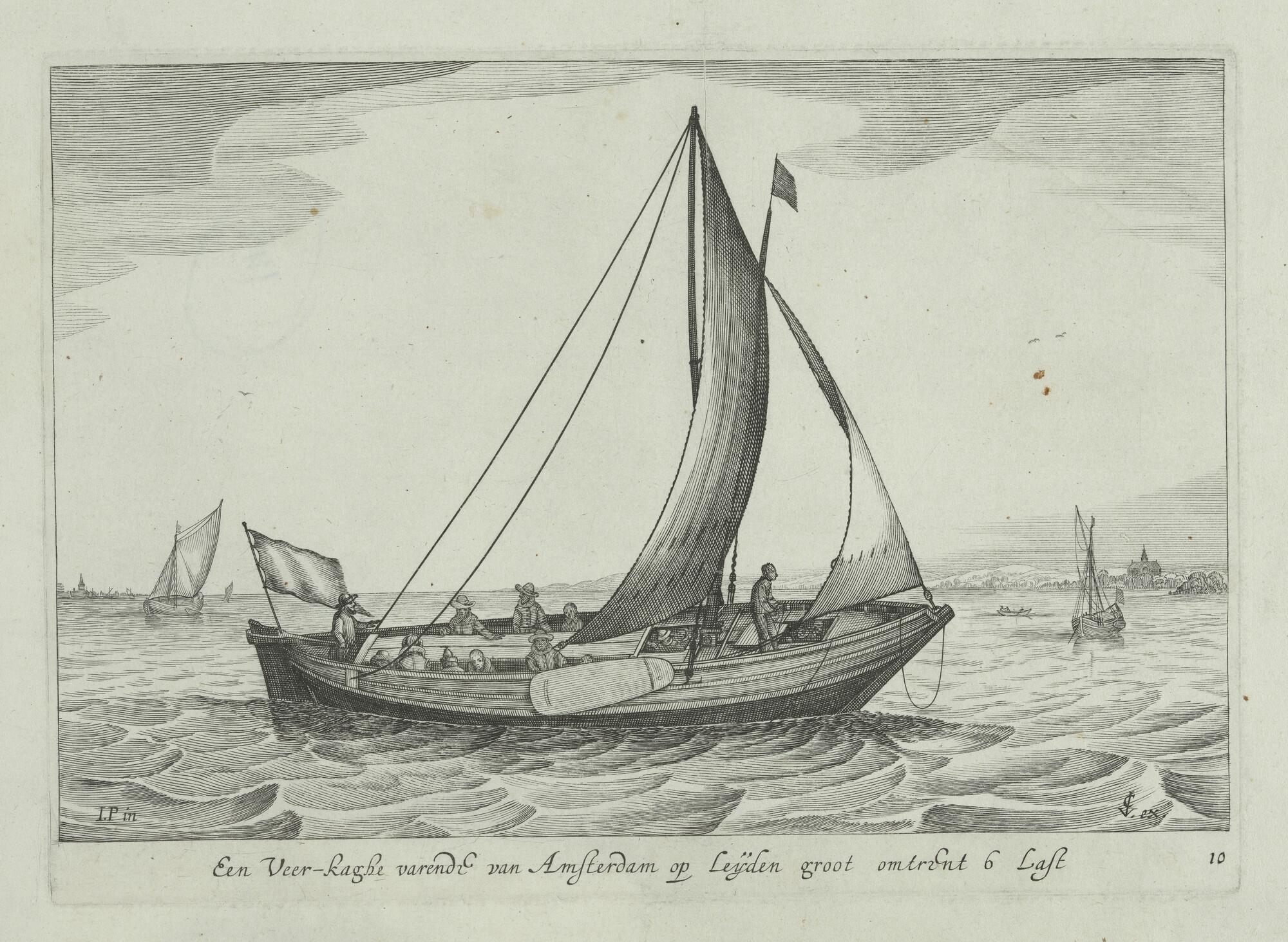 Een veerkaag van Amsterdam op Leiden uit de serie 'I...