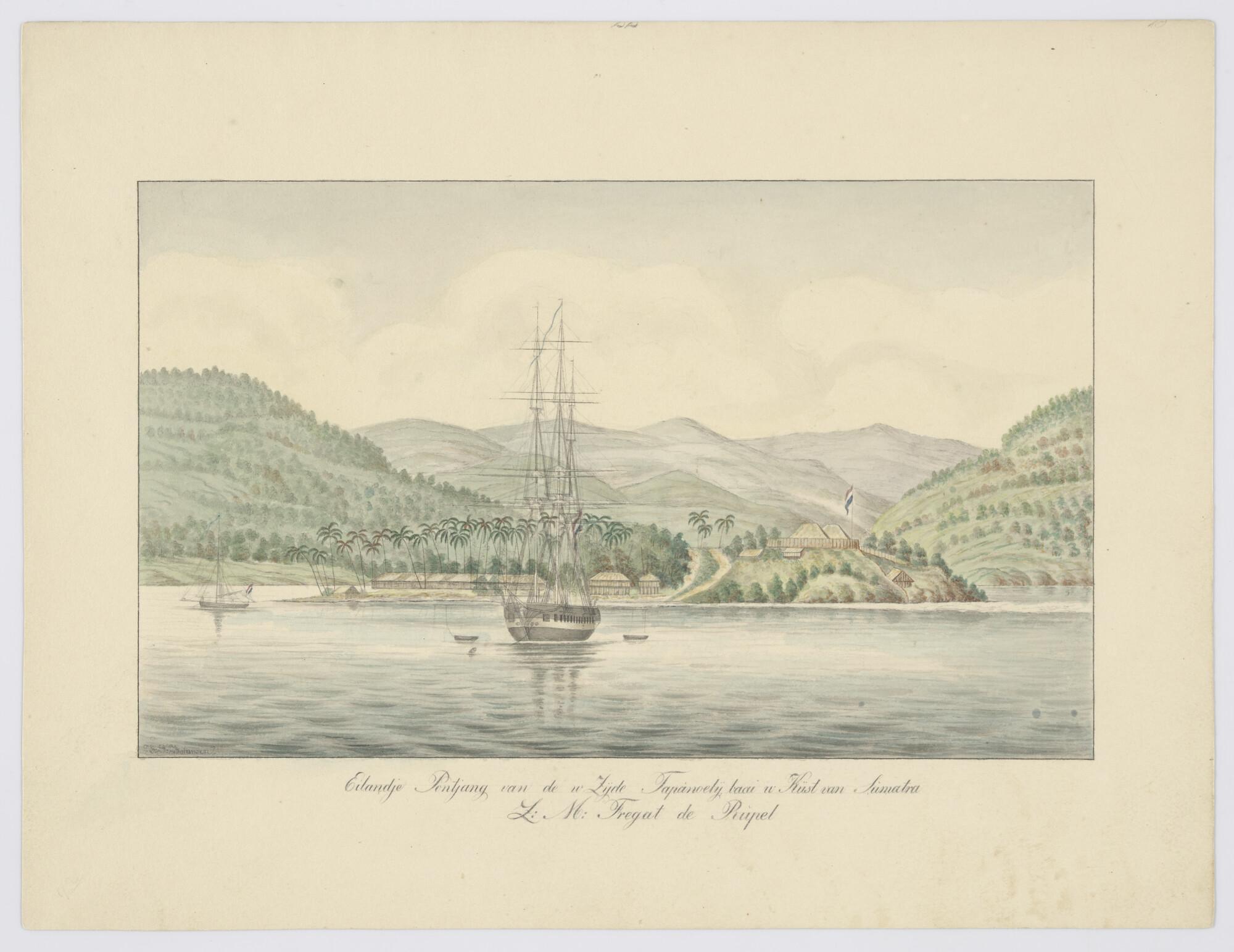 Het fregat Zr.Ms. 'Rupel' bij het eilandje Pontjang ...