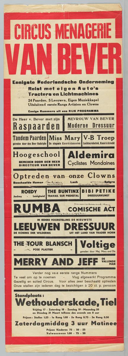 Circus Menagerie v. Bever - voorstelling te Oosterho...