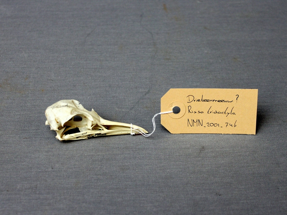 Drieteenmeeuw; schedel met ondersnavel;determinatie ...
