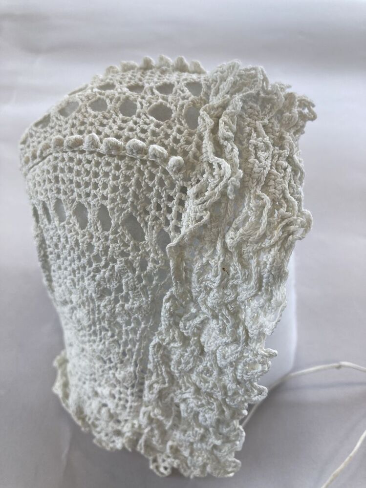 Paar wit gehaakte katoenen mouwtjes, behorend bij st...