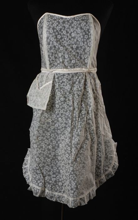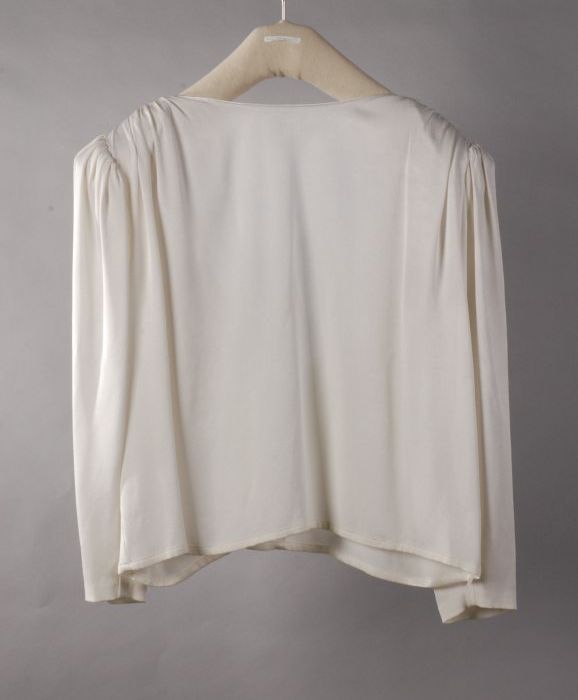 Ivoorwitte doopjurk van parachutezijde, met pofmouwe...