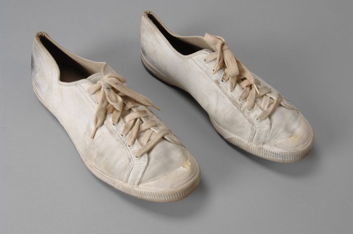 Witte canvas gymschoenen met zwarte rubberen zolen, ...
