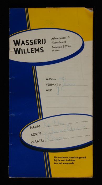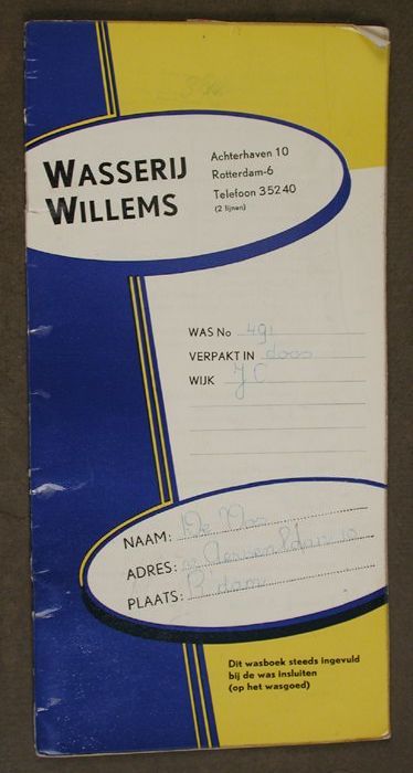 Wasboekje van "Wasserij Willems" op naam van De Vos