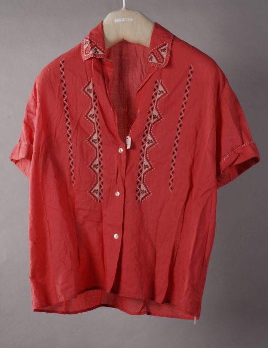 Blouse, roze katoen, korte mouwen en knoopsluiting v...
