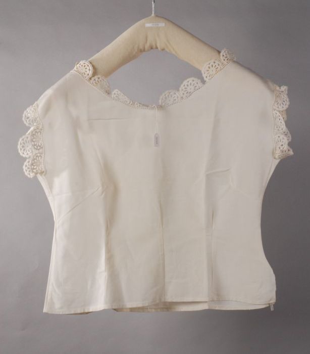 Wit katoenen blouse zonder mouwen, brede ronde hals,...