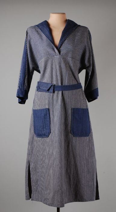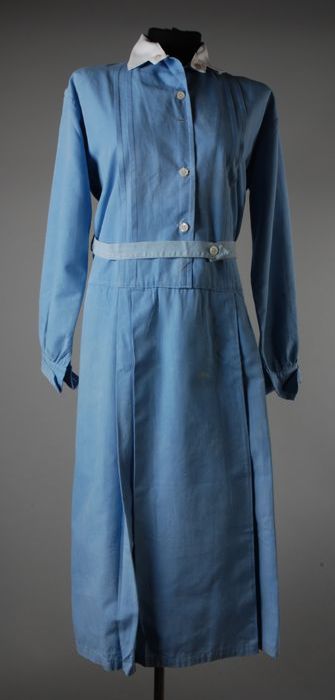 Lichtblauw katoenen kuitlange dienstbodejurk