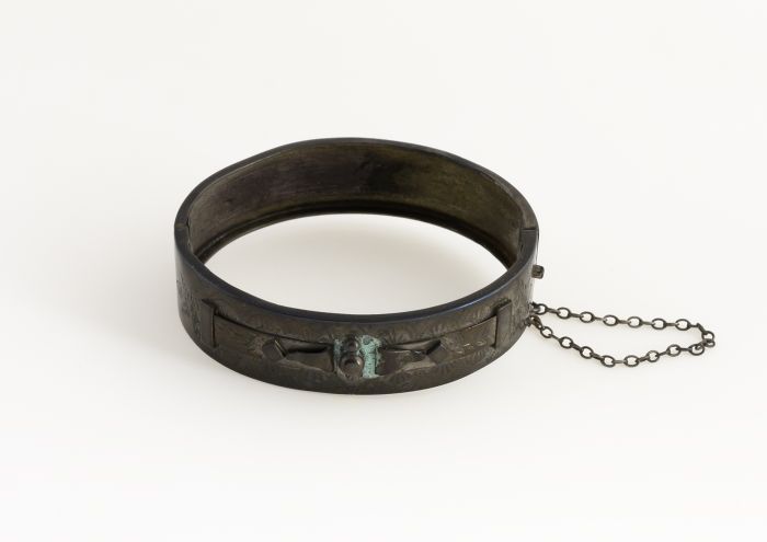 Metalen ovalen armband met decoratie en gegraveerde ...
