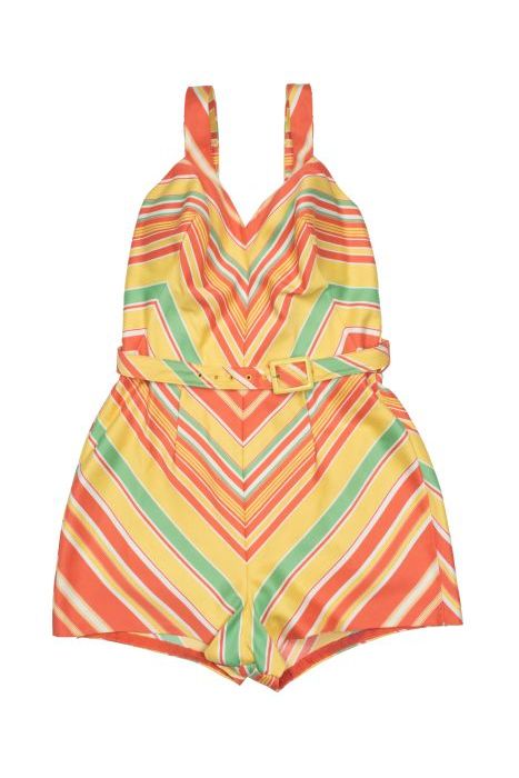 Zonnepakje van diagonaal gestreepte katoen, kort bro...