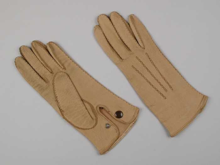 Paar ellebooglange trouwhandschoenen van wit leer me...