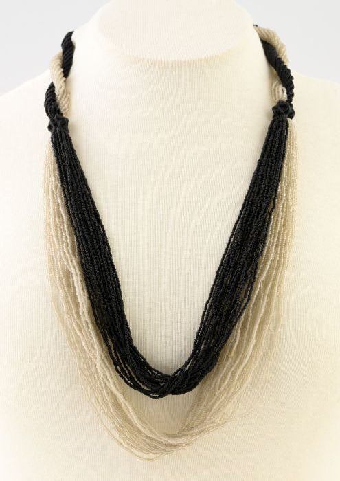 Kralencollier van drie strengen gele kralen met pare...