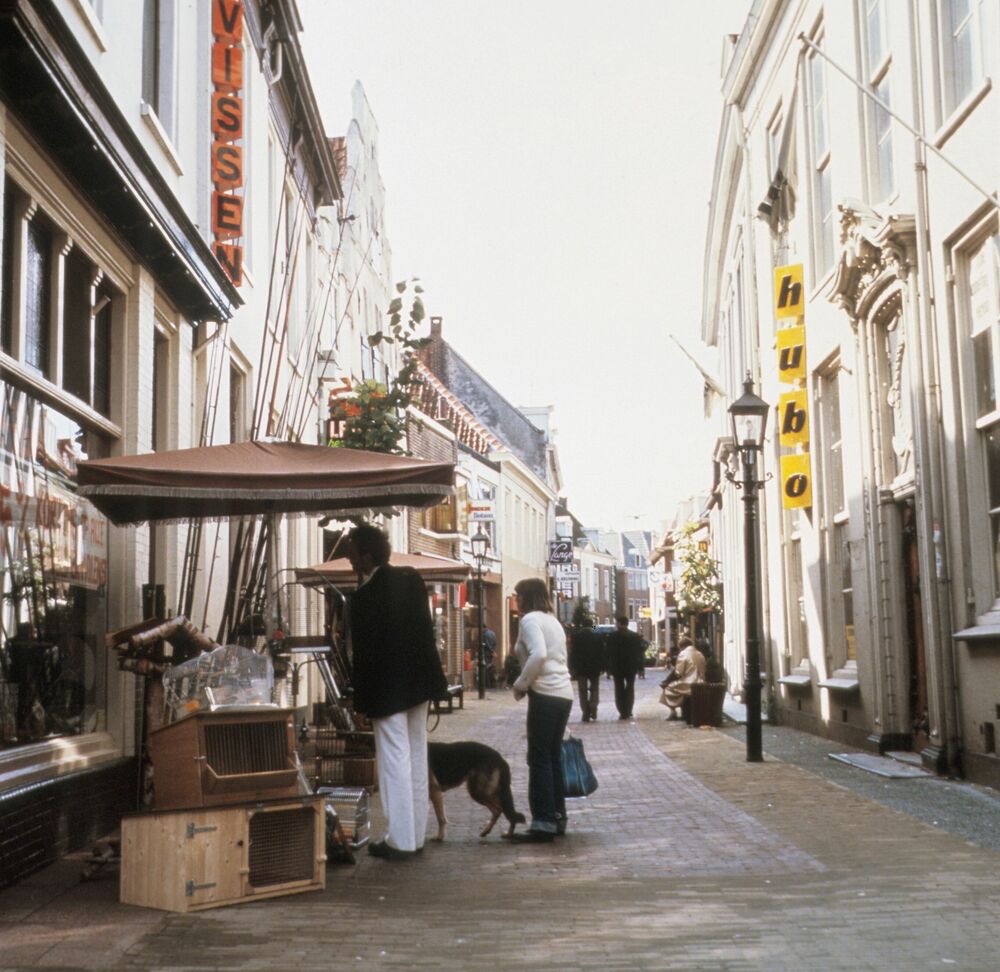 Donkerstraat met winkelend publiek
