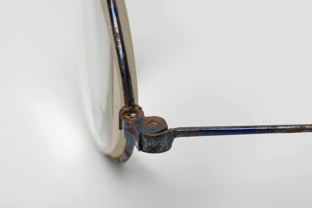 slapenbril met stalen montuur en blauw getinte glazen