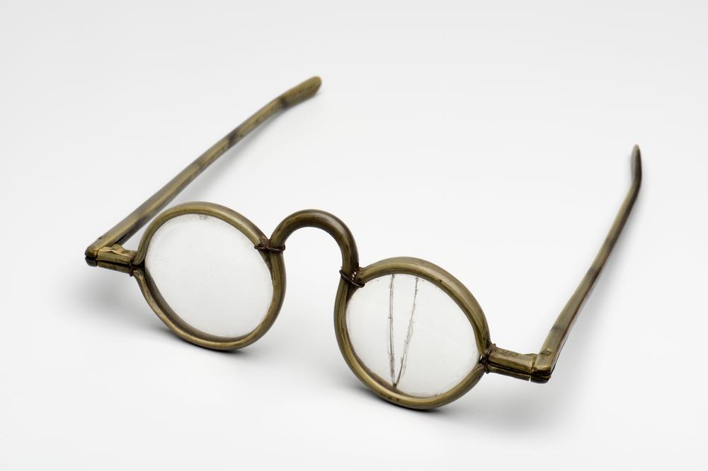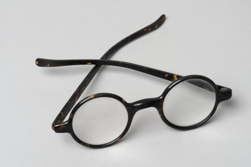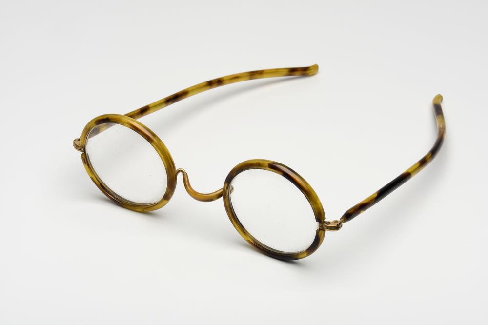 Slapenbril met messing montuur belegd met celluloid