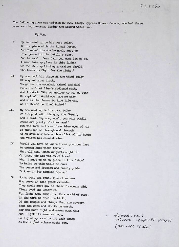 Vel met tekst gedicht "My sons" van W.G. Young