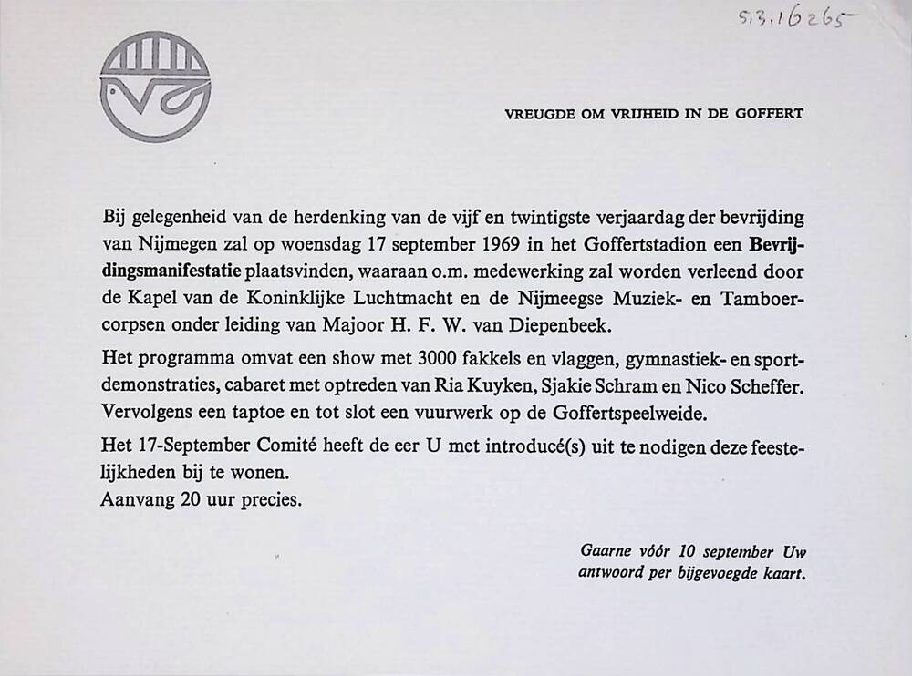 Uitnodiging voor bijwonen feestelijkheden in het Gof...