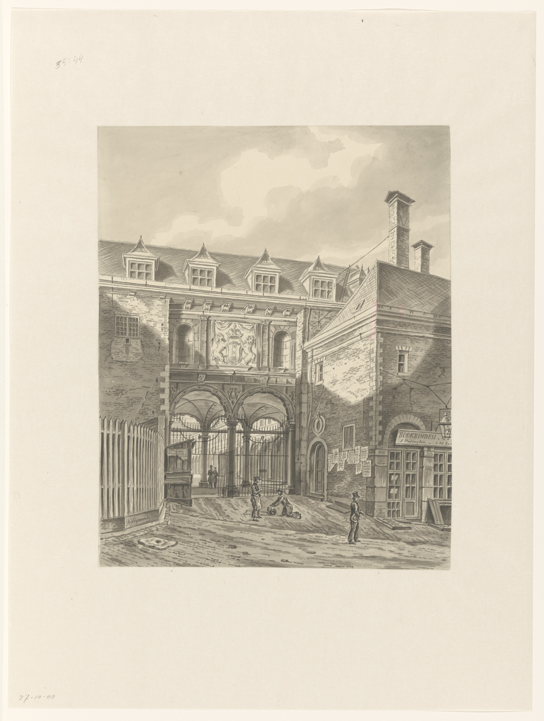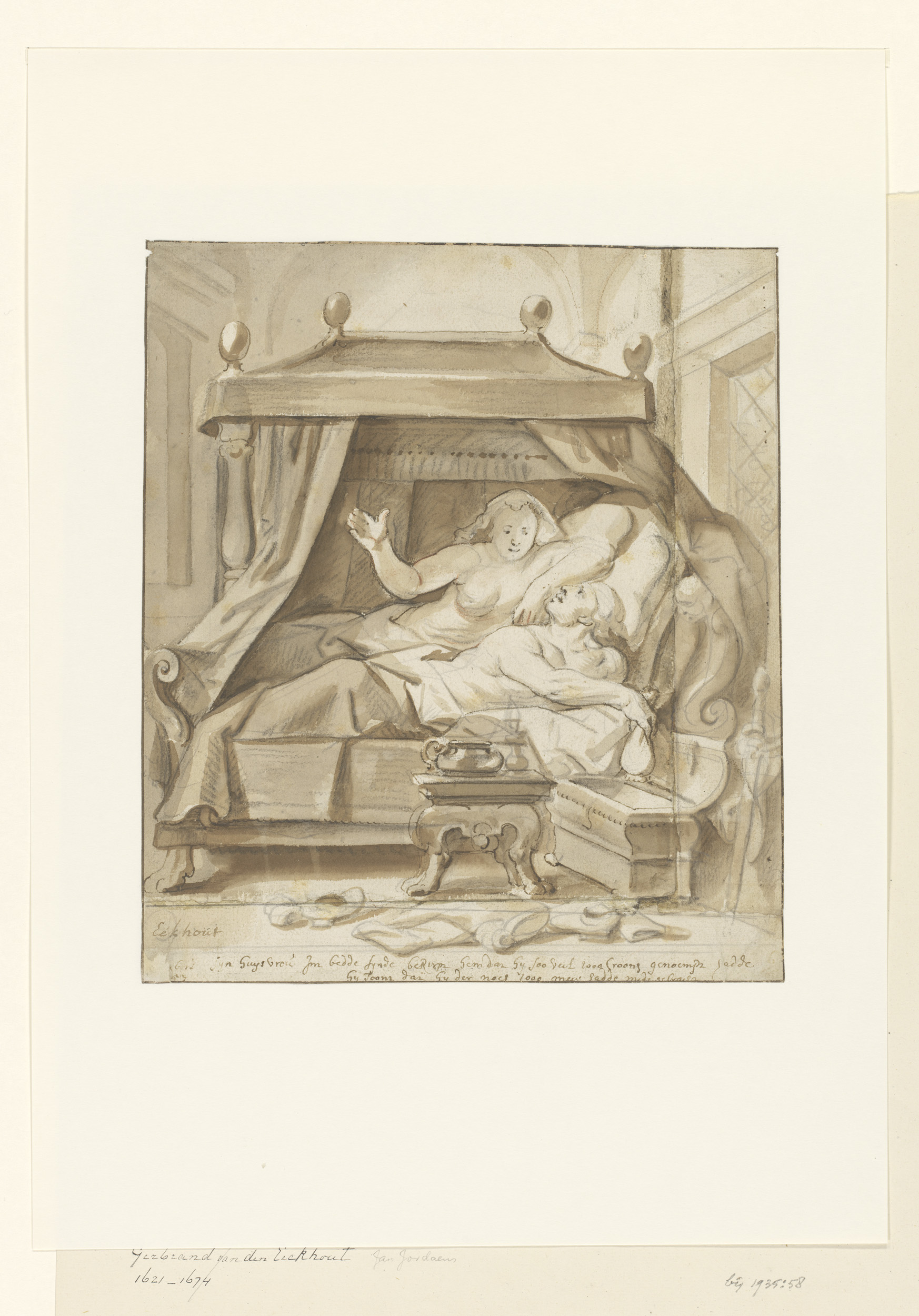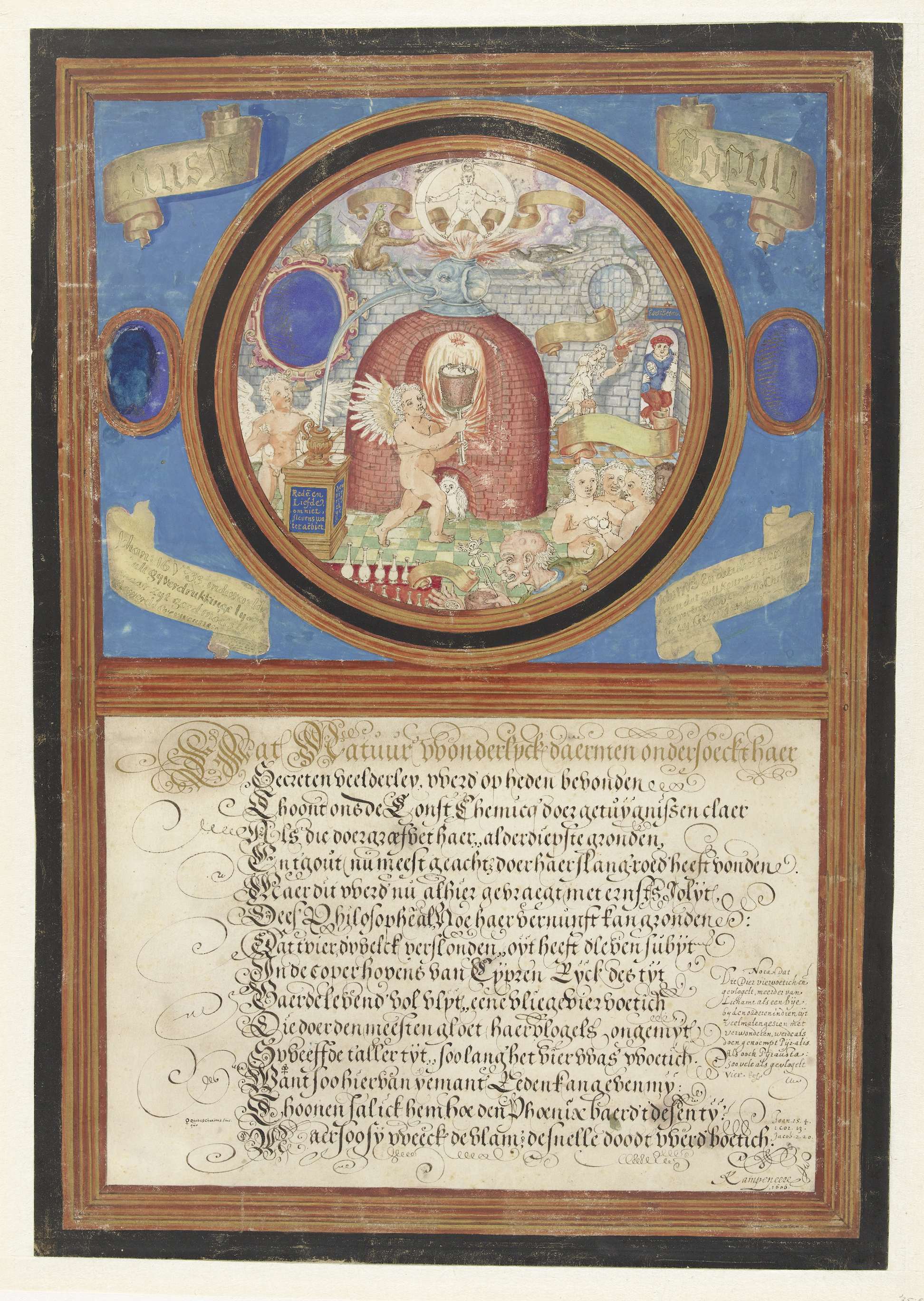 Allegorische vrouwenfiguur met twee putti boven een ...
