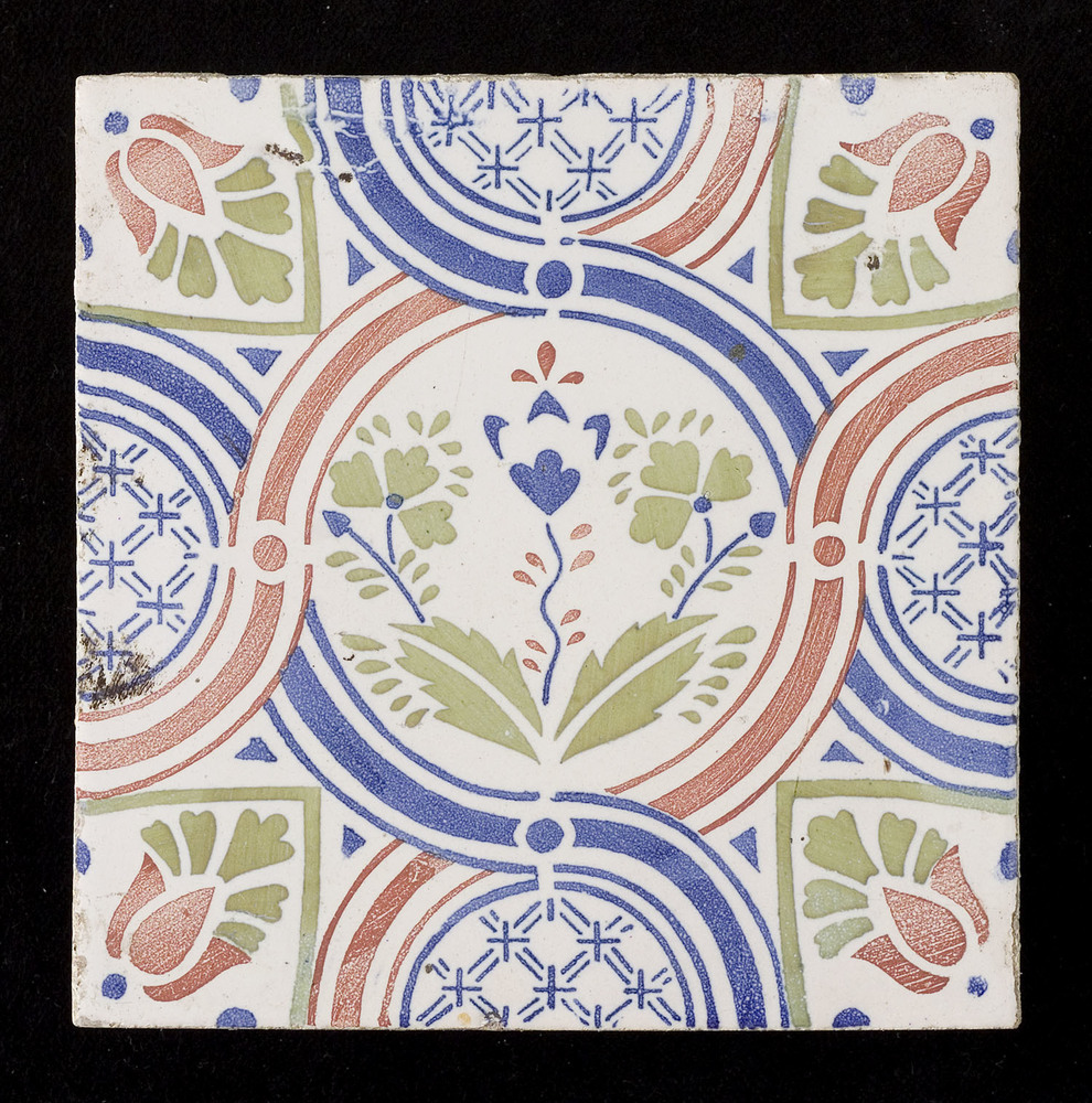 Tegel van keramiek, tinglazuur en sjabloon, waarschi...