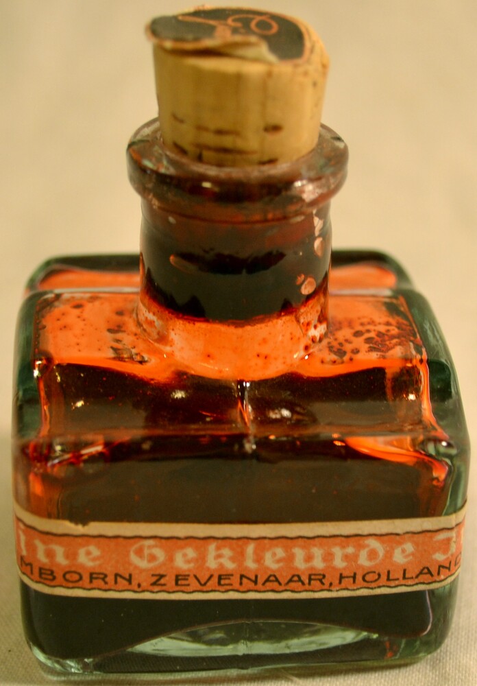 Flesje van glas gevuld met rode extra fijn gekleurde...
